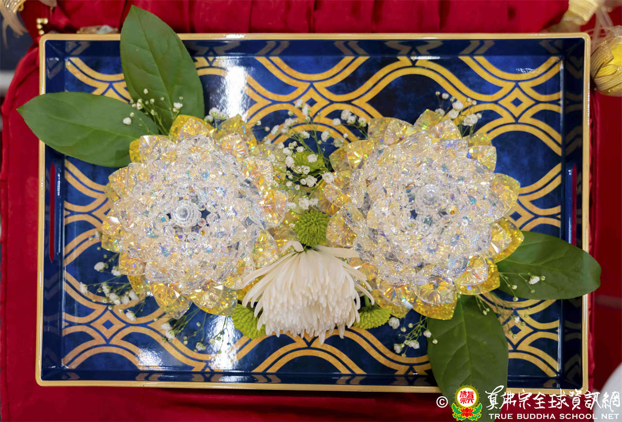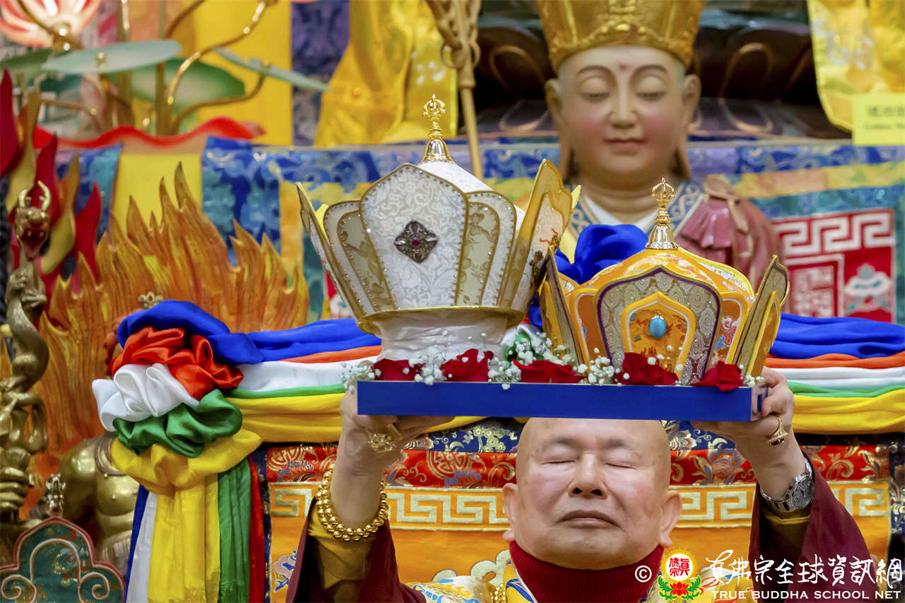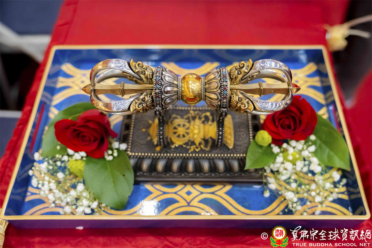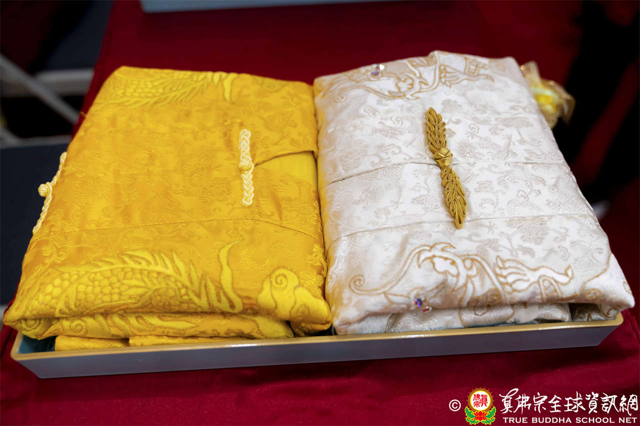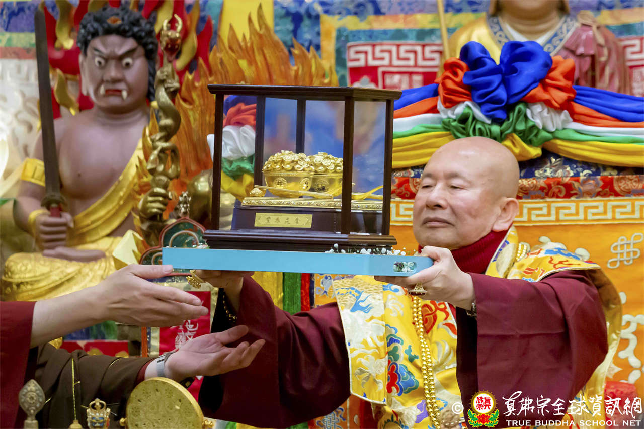 因為今天是大年初一,所以特別有這掃把的灌頂幡,這是只有True Buddha School才有的。一掃煩惱輕,二掃過去的霉運全部除掉,三掃業障消,也就是過了這掃把的灌頂幡後,過去的一切全部掃除乾淨,以後就全部是福分來臨,這是今天晚上最重要的。(大眾熱烈鼓掌)