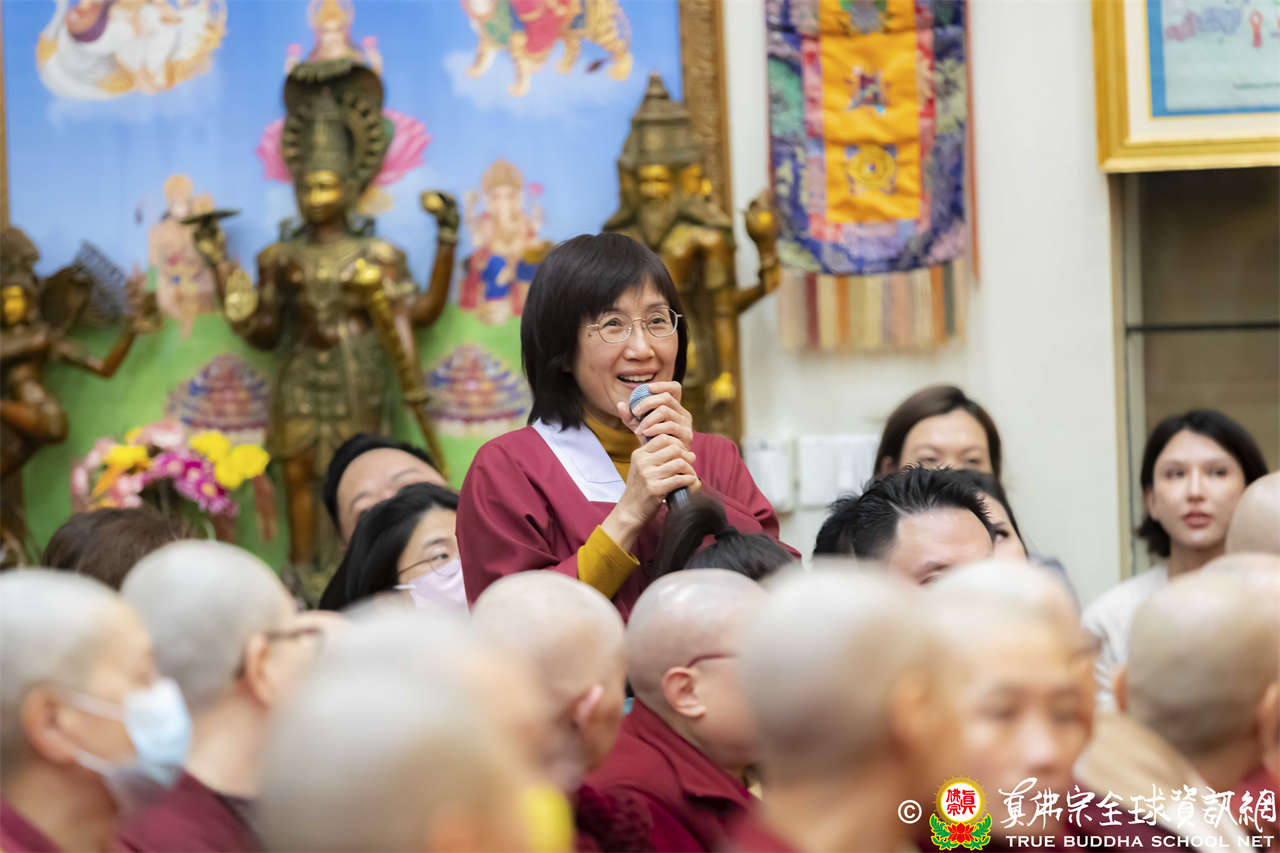 在寶貴的法語開示之後,聖尊蓮生活佛以拂塵加持與會大眾。步出密壇大殿,沁涼的微風迎面襲來,今夜在大雄寶殿裡聖尊宣講維摩詰經,與弟子們言笑晏晏,與會者都如沐春風,心頭暖暖的,為今日譜寫了美好的法筵篇章。
