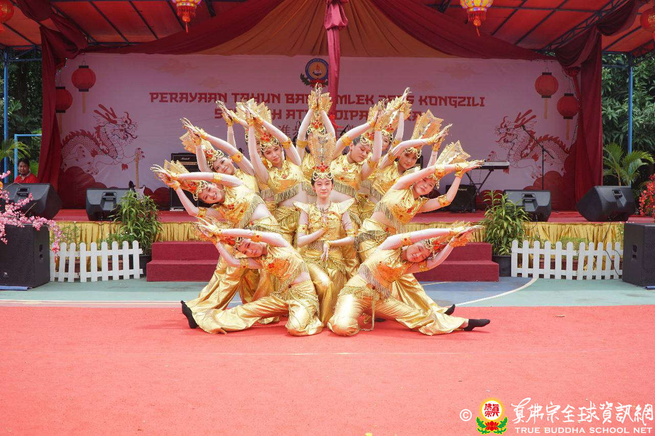 印尼雷藏寺佛學班的全體師生則在2月18日星期日上午9點,假座雷藏寺大殿慶祝農曆新年。首先恭請釋蓮飛上師主壇,全體師生及家長的同修,完後蓮飛上師特別開示為何要安太歲的意義及重要性。接著與會貴賓當格浪縣的佛教輔導司長SAKIYO先生也出來致詞,他特別囑咐要教導孩子們尊敬父母親。然後就是學生們的才藝表演,有玩扯鈴的,舞蹈表演,話劇表演等,還有搶答問題得紅包的,最後是財神爺出現大發紅包。那些陪伴孩子們來參加節目的家長們,幾乎都穿上紅色的服裝,讓現場一片喜氣洋洋。