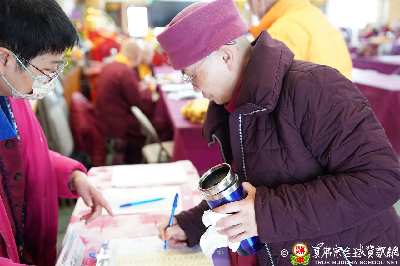 考慮到在雪地行走不便,午餐在護摩殿用餐,大會準備了色香味俱全的菜色,每年二度的上師大會,上師們皆歡喜齊聚暨討論宗務發展。