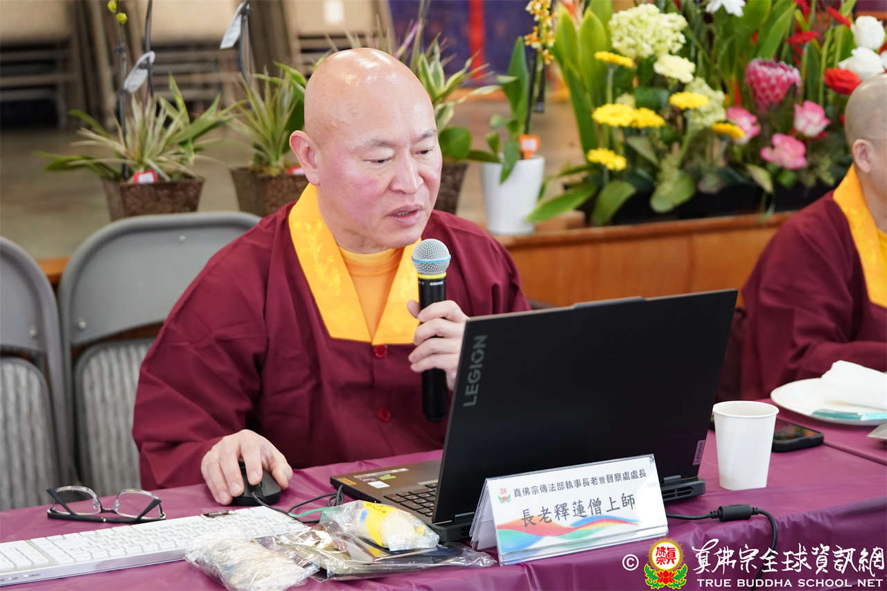 育賢司–司長蓮哲長老報告佛學教育的規劃。