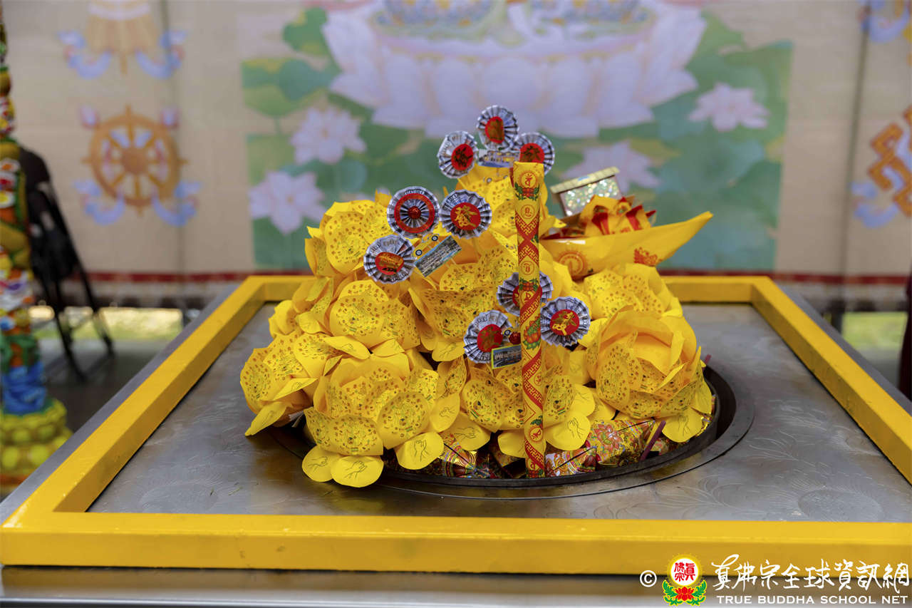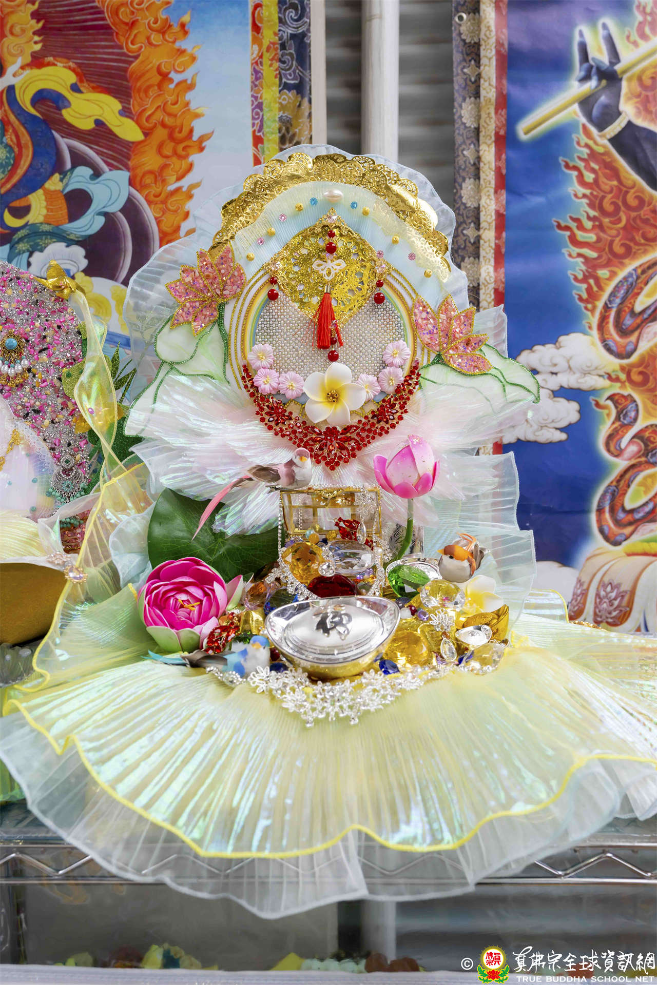 蓮生法王開示是日主尊聖觀音是觀世音菩薩千百億化身之一,祂有第一富翁的法。所以今日從清晨到晚上都是傾盆大雨,財大如雨注,寓意遇水則發。