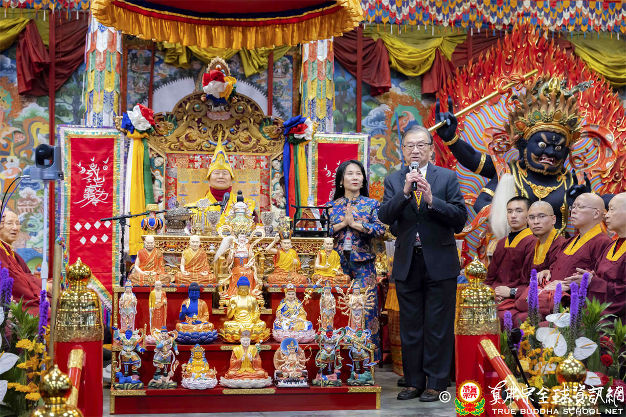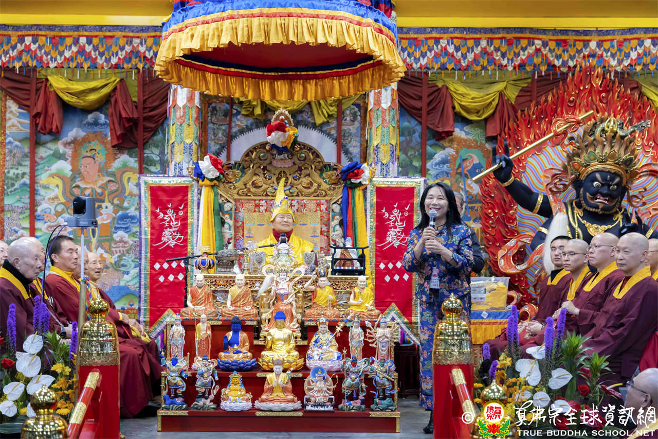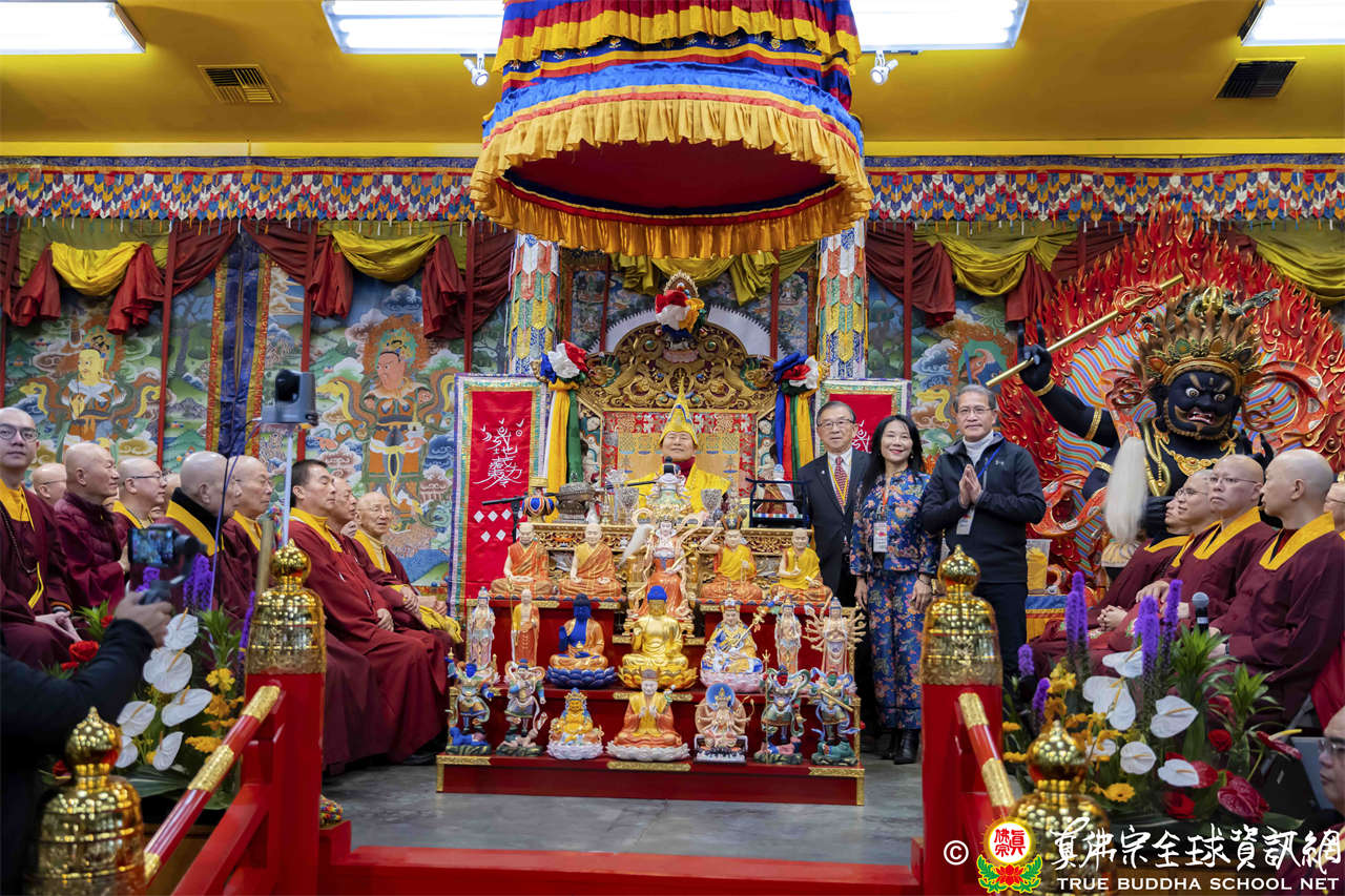 護摩結束後,大會歡迎是日貴賓,來自貝爾維尤(City of Bellevue)的李瑞麟(Conrad Lee)前市長、紐卡斯爾(City of New Castle)的孫榮芬(Sun Burford)市議員及廖東周大使上台合影。此外,李瑞麟前市長表示為蓮生法王對於社會所提供的幫助非常欽佩及感激。孫榮芬也表示能夠來臨法王的法會感到榮幸,同時也對法王表達崇高的敬意。
