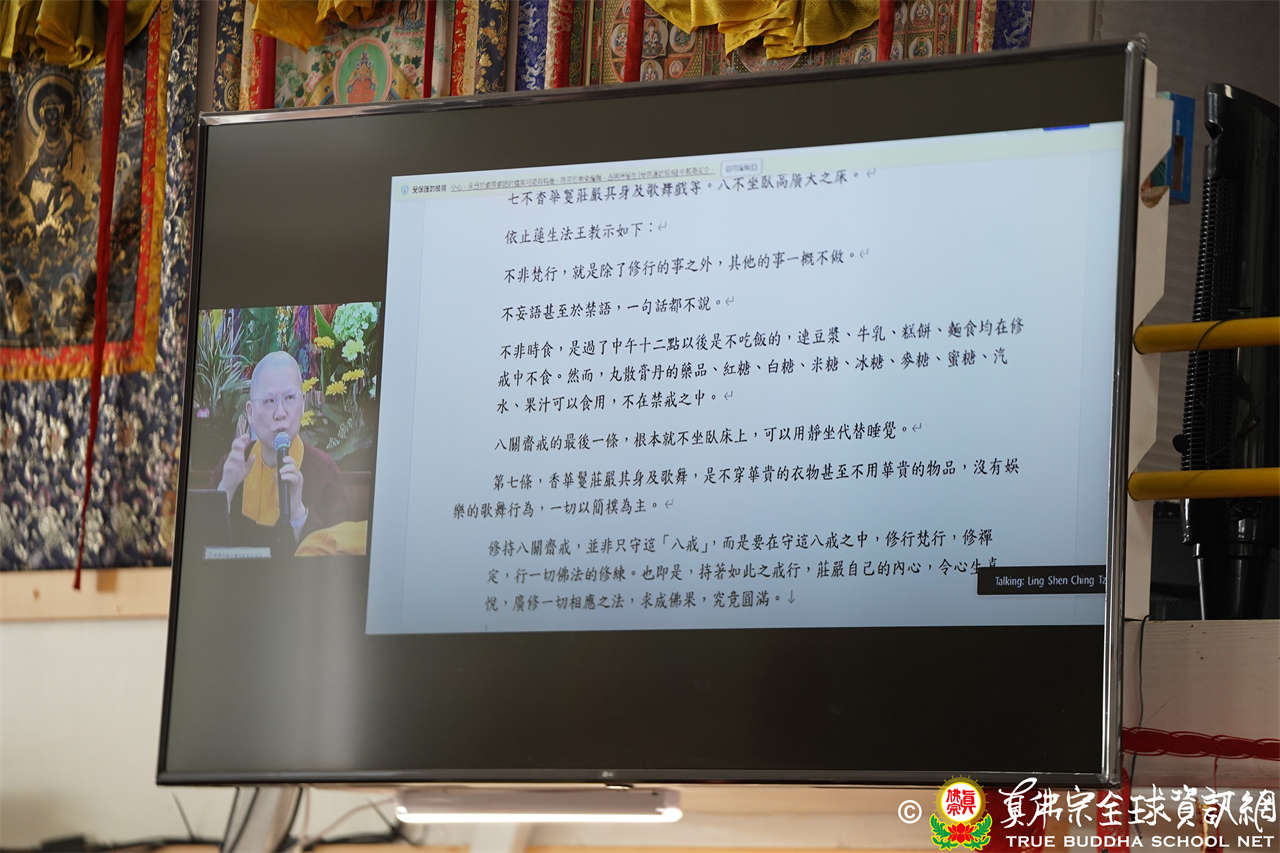 法統司副司長蓮傳長老報告:「八關齋戒」是佛陀時代教導在家居士於六齋日遠離俗家,一日一夜在寺廟學習受持八條戒律,體驗清淨的生活,作為在家居士薰習出世善根的簡易法門。