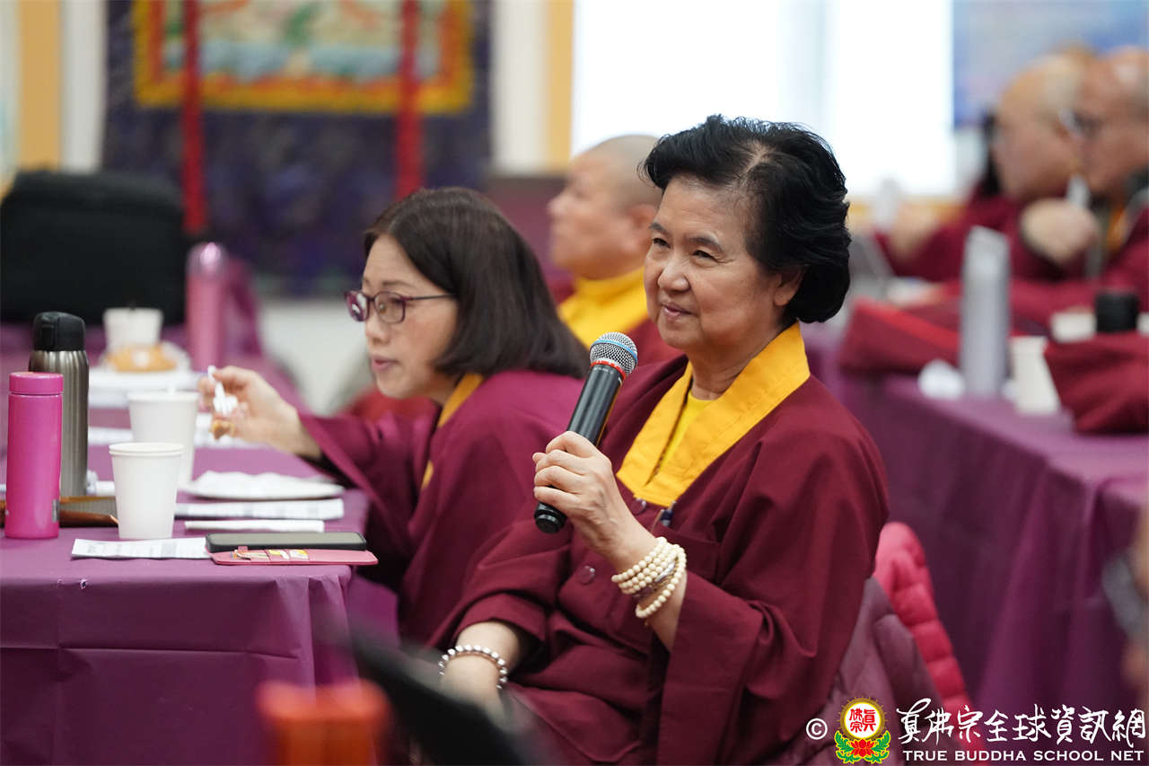 育賢司司長蓮哲長老報告:上次會議通過佛學教育規劃,以真如、瑜伽、唯識、中觀、般若等五大項為佛法全部。師佛的教法以瑜伽為主;另外師佛在2019年3月應教授團的請示,親筆寫下「真佛宗開悟學院」及「道顯密研究所」的墨寶,期望推動真佛教育發展。五大項的教材編輯,授課老師與指導老師,密教內法的授課與指導,都需要教育菁英團隊。教育處長蓮訶上師也補充說明,教育處目前需要幫忙的是授課老師與教材編輯方面。