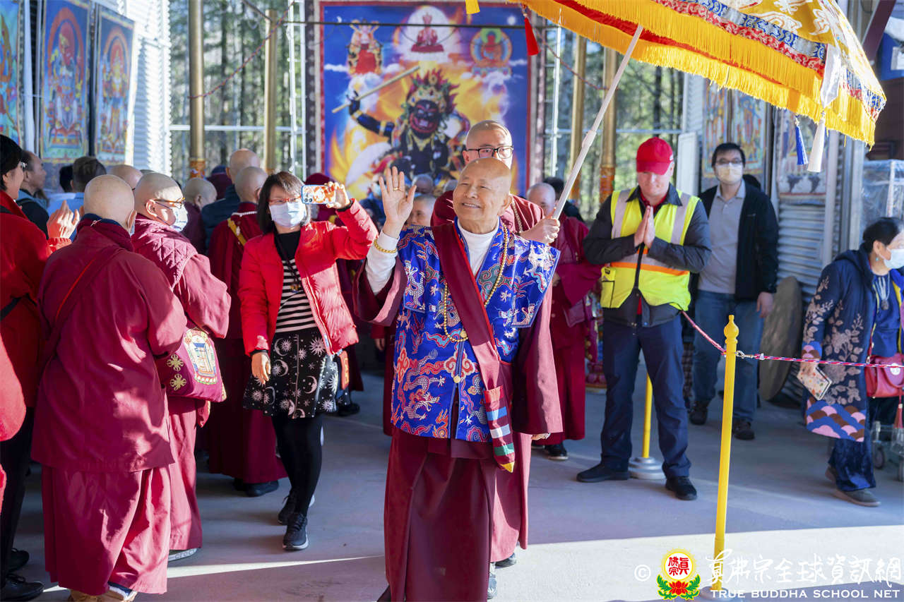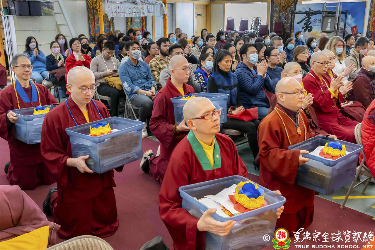 法王繼續解釋:佛是無來去的,也是因無所得而得。如《金剛經》的:過去心不可得、現在心不可得、未來心不可得。過去已過,現在正成為過去,未來也在成為現在,三際一如。就算是現在擁有的一切,都會變成沒有。悟到得不到什麼,就煩惱解脫。因為什麼都得不到,剩下的都布施眾生:財施、法施、無畏施。法王最後強調:因無所得,才是無上正等正覺。佛性沒有帶業是很重要的,人生在世就是為了酬業,懺悔過去業障,證得無所得,自然不會造業。開示結束後,法王與zoom上弟子互相問候,賜授現場與會大眾「大力金剛法」灌頂。法會圓滿結束。