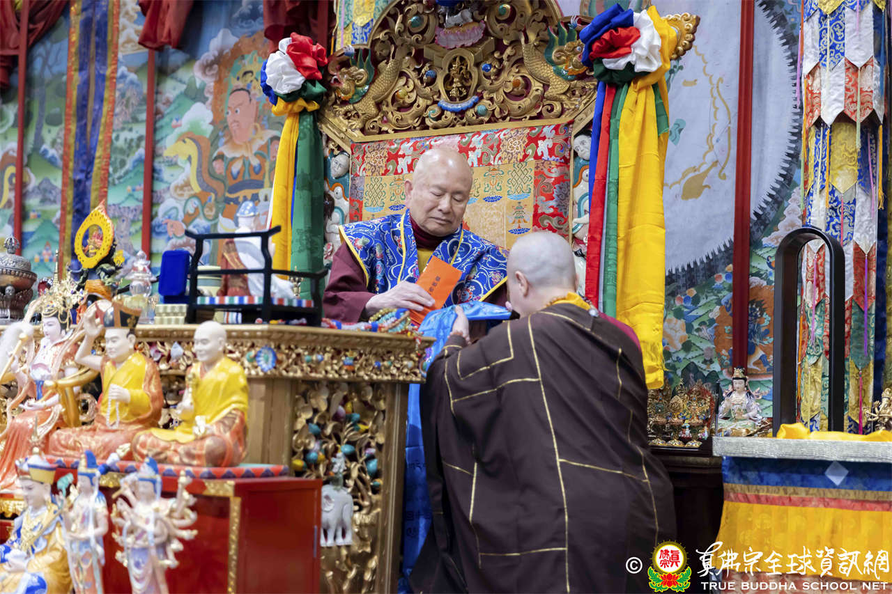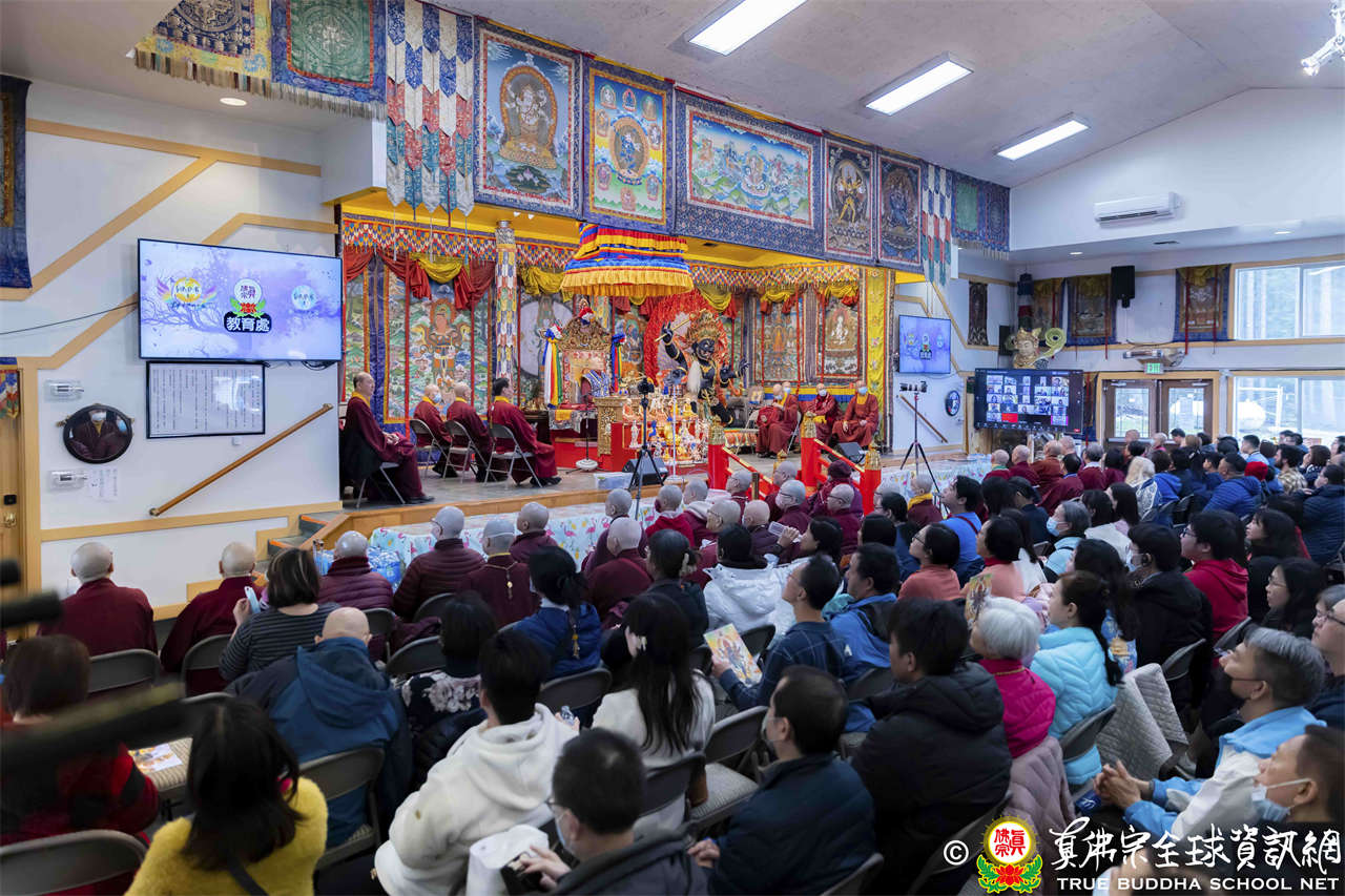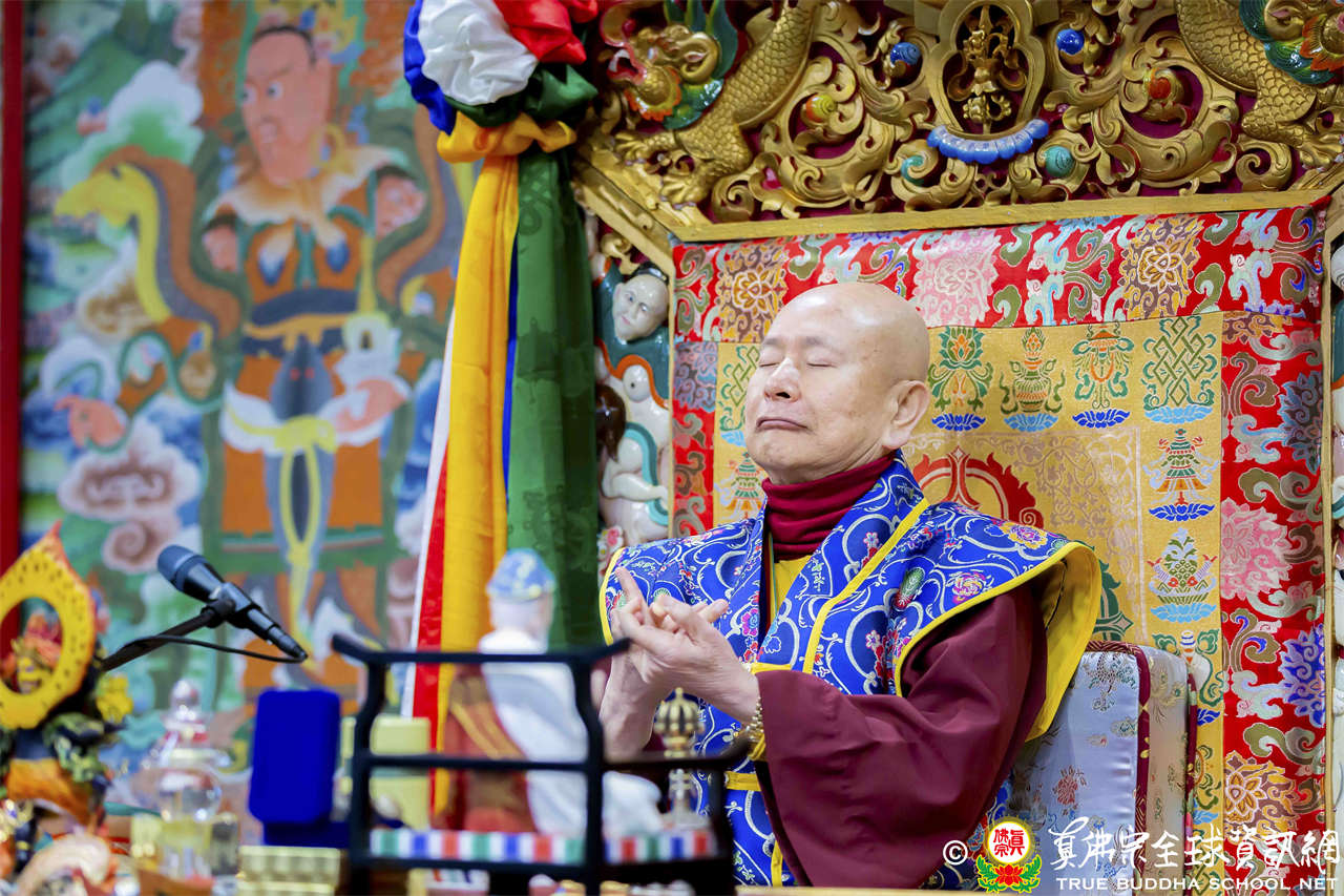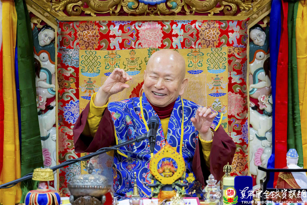 接著法王繼續講解《維摩詰經》〈佛道品第八〉:「…現於訥鈍,而成就辯才,總持無失;示入邪濟,而以正濟度諸眾生;現遍入諸道,而斷其因緣;現於涅槃,而不斷生死。文殊師利,菩薩能如是行於非道,是為通達佛道…」