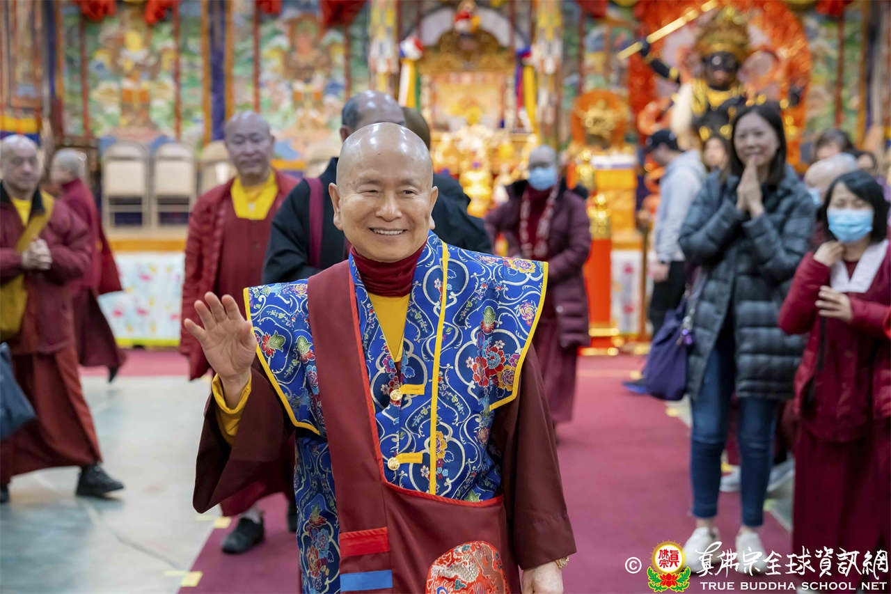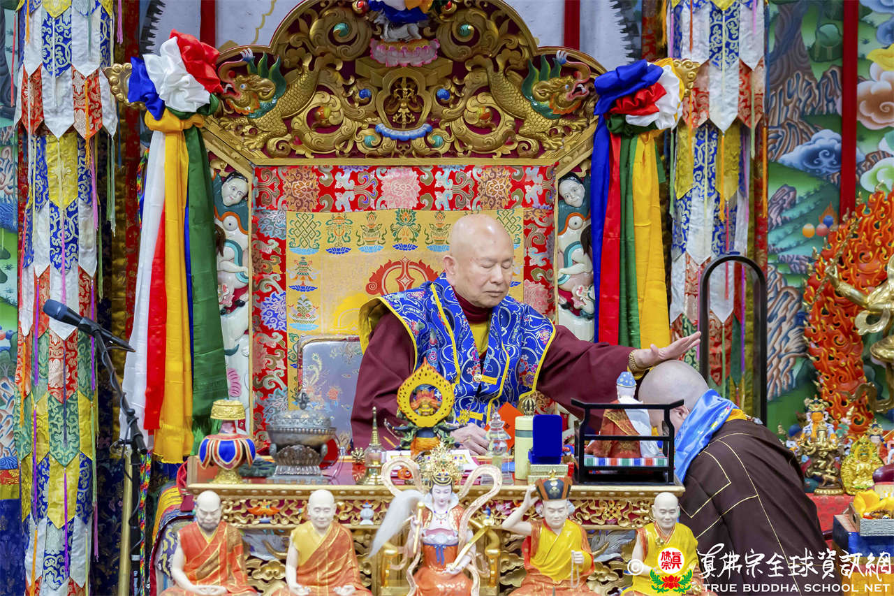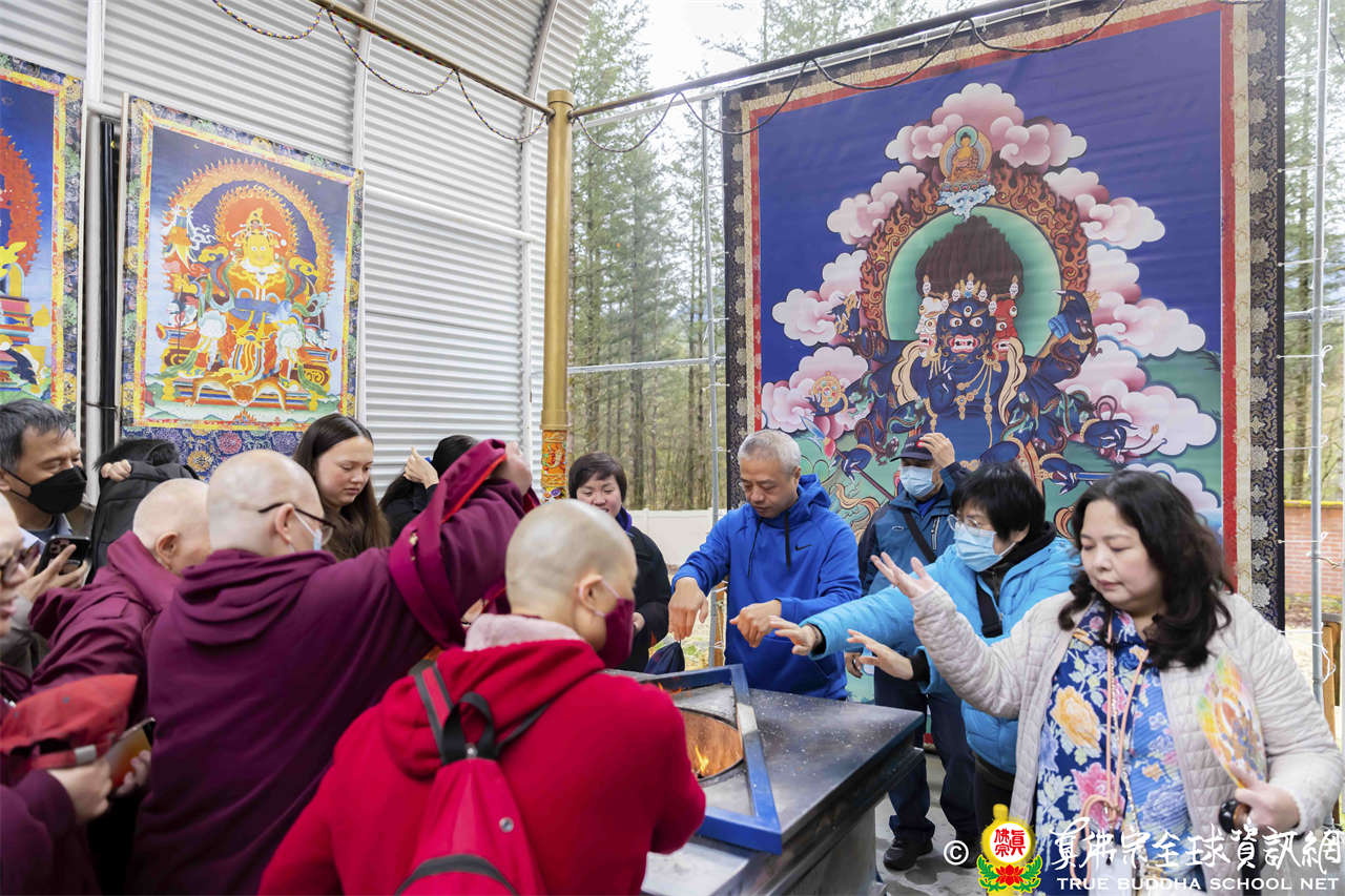 法王開示至此,護摩法會圓滿結束。接著,法王與線上的弟子打招呼,並爲現場出席者賜授穢跡金剛法灌頂。