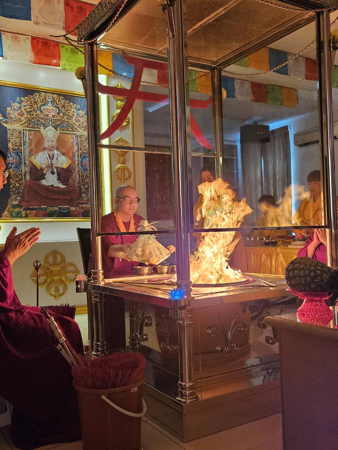 釋蓮碤上師於2024年4月21日在馬來西亞傳律雷藏寺主壇專壇「請佛住世瑤池金母護摩」,迴向師佛: