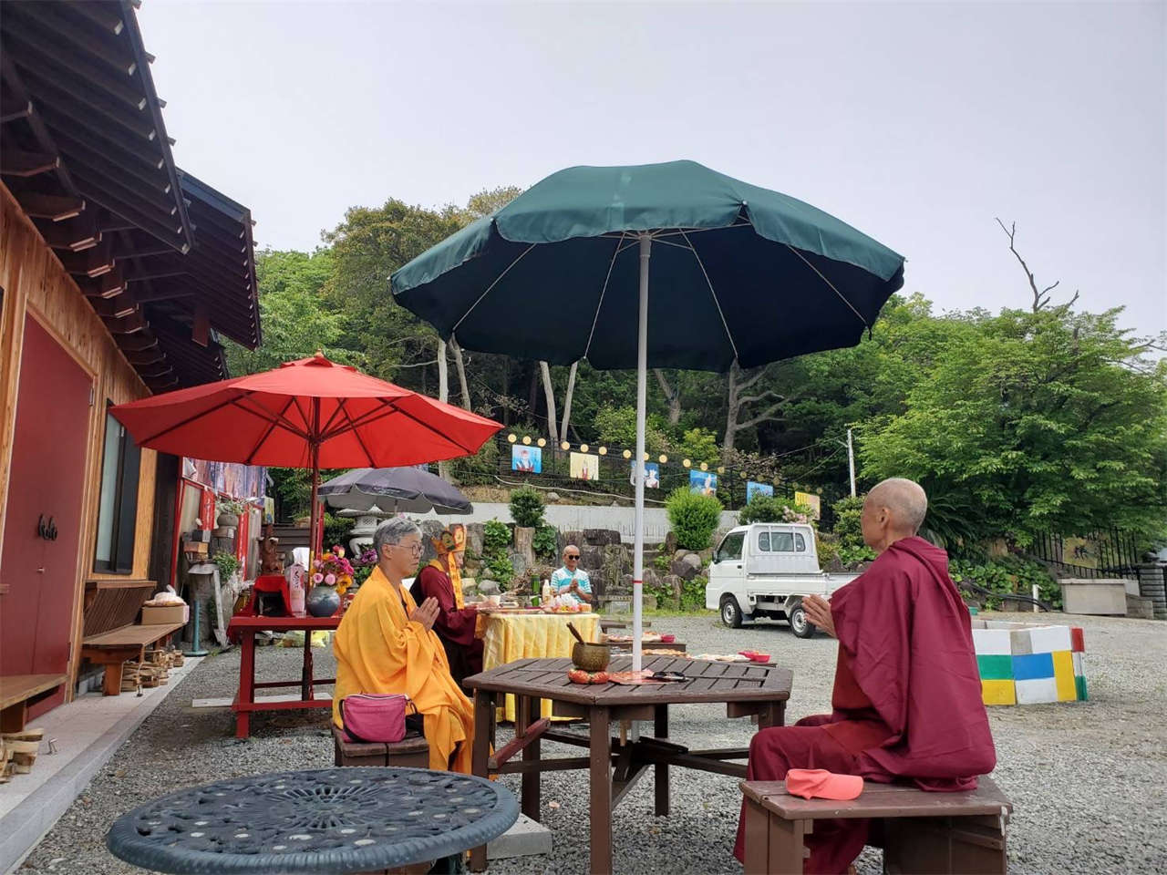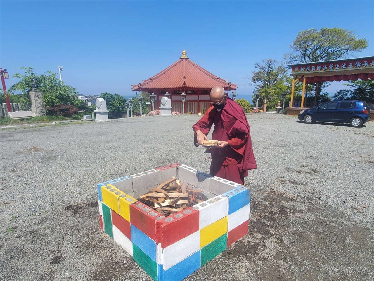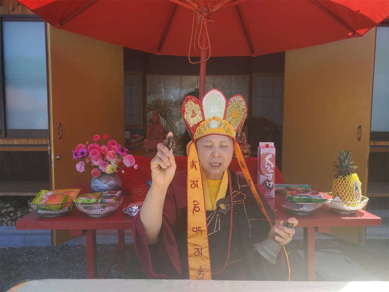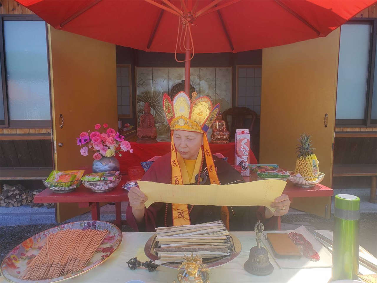 釋蓮花靜香上師於2024年4月23日在日本住吉雷藏寺主壇專壇「請佛住世瑤池金母護摩」,迴向師佛: