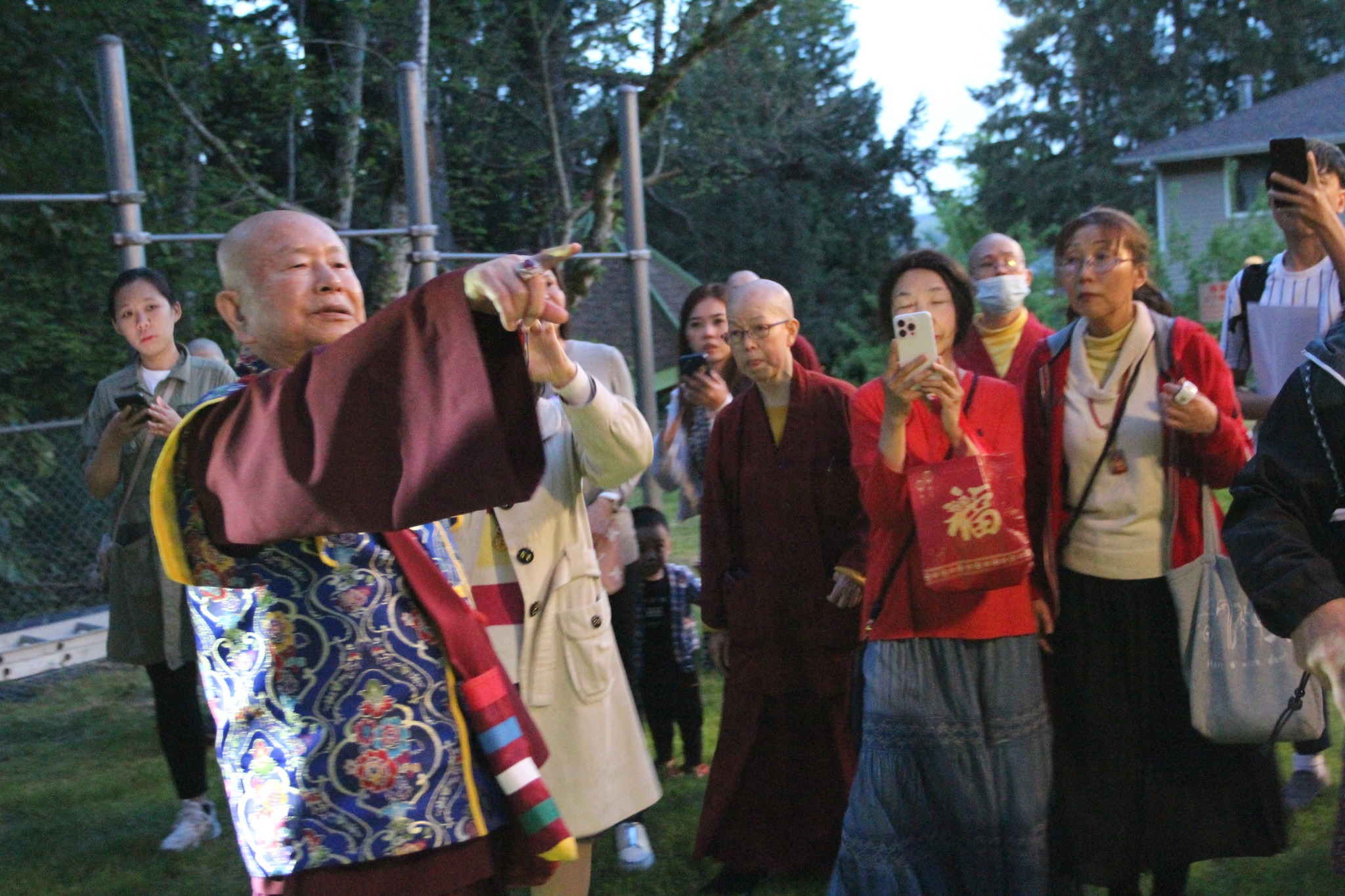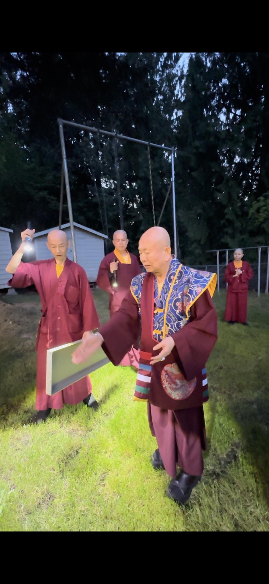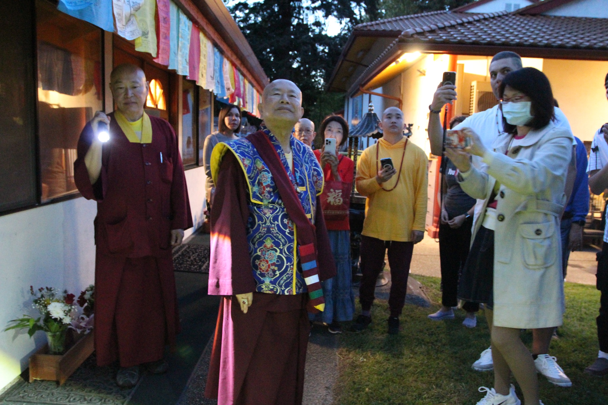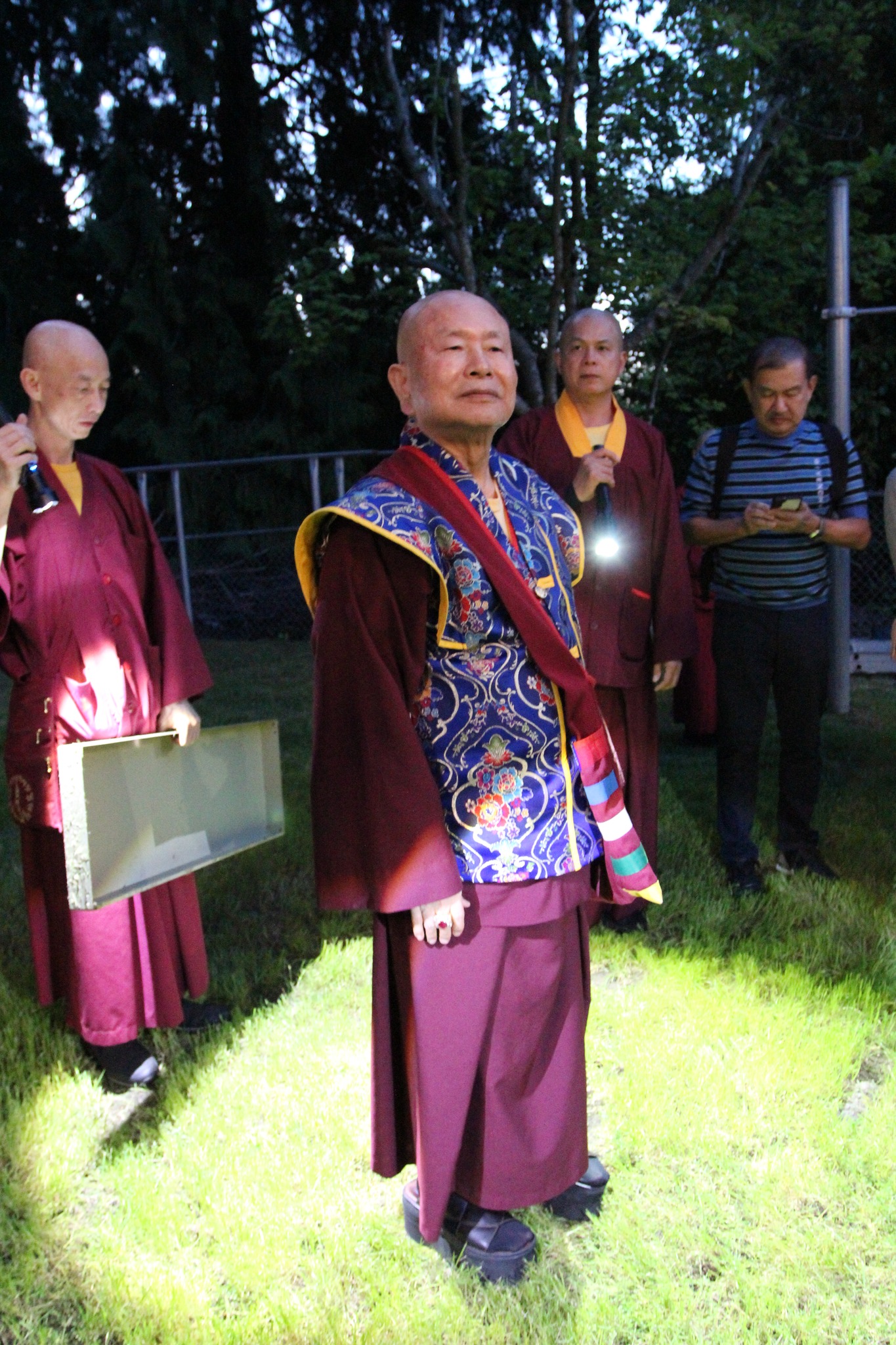 堪輿結束後,師尊回到真佛密苑,在門口與大家談話時,突然問起月亮在哪裡?眾人紛紛仰望夜空找尋,只見明亮的下弦月正好掛在剛剛師尊所點的月下老人祠處的上空,眾人驚訝不已,直呼相應了!師尊說,真的是月下老人耶!將來想求婚姻的都可以來求月下老人,得到紅線有個好姻緣。