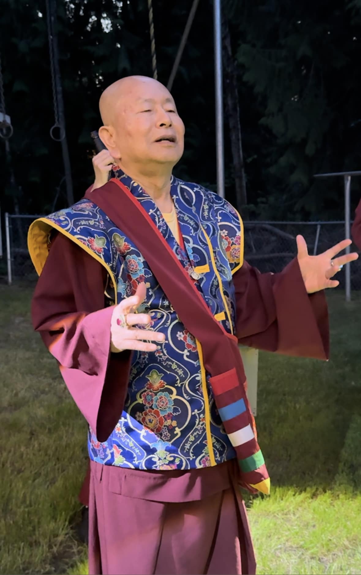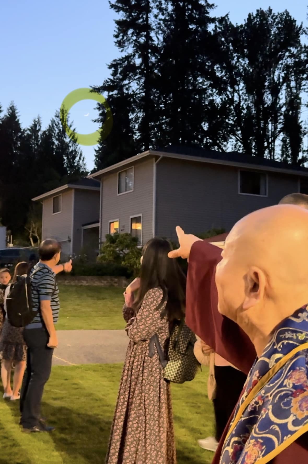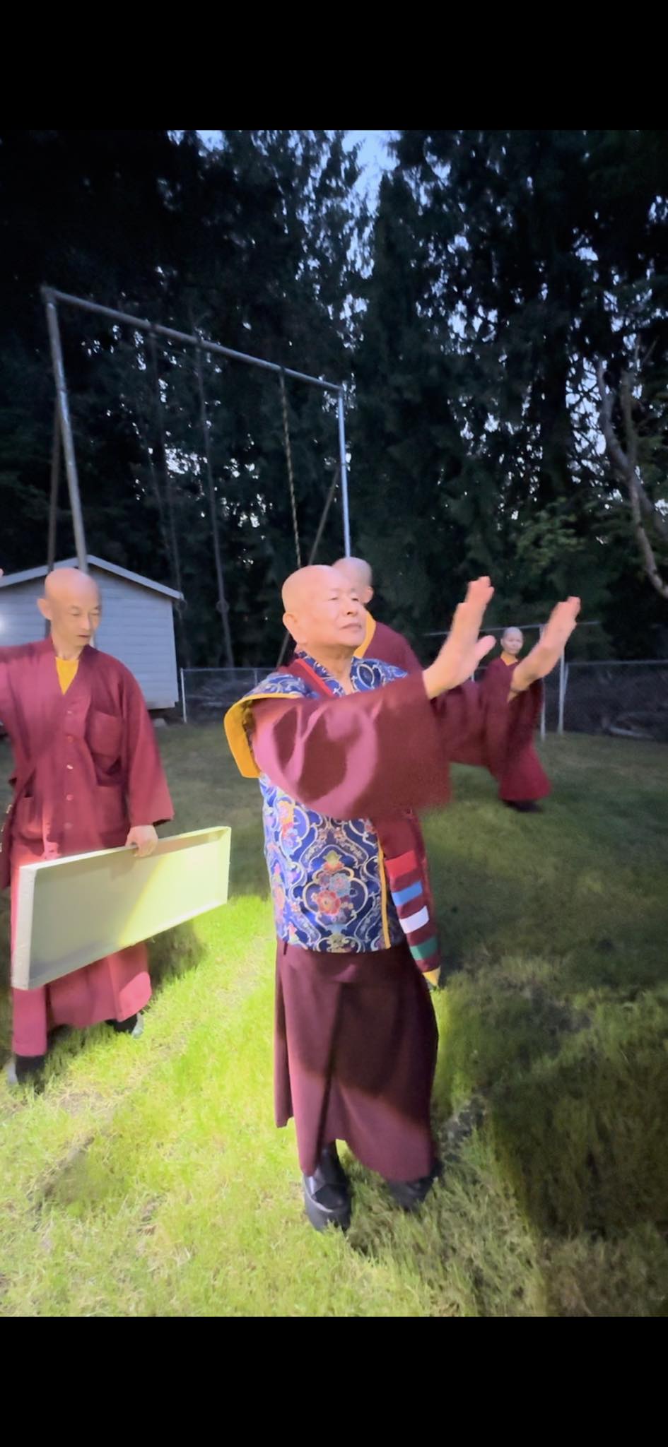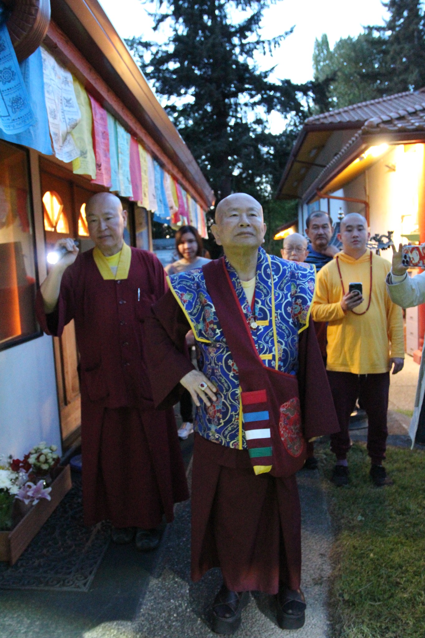 堪輿結束後,師尊回到真佛密苑,在門口與大家談話時,突然問起月亮在哪裡?眾人紛紛仰望夜空找尋,只見明亮的下弦月正好掛在剛剛師尊所點的月下老人祠處的上空,眾人驚訝不已,直呼相應了!師尊說,真的是月下老人耶!將來想求婚姻的都可以來求月下老人,得到紅線有個好姻緣。