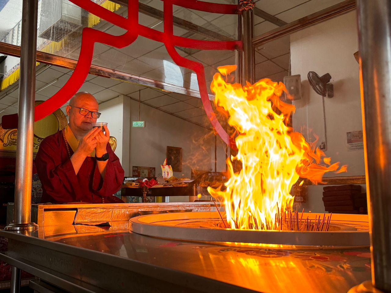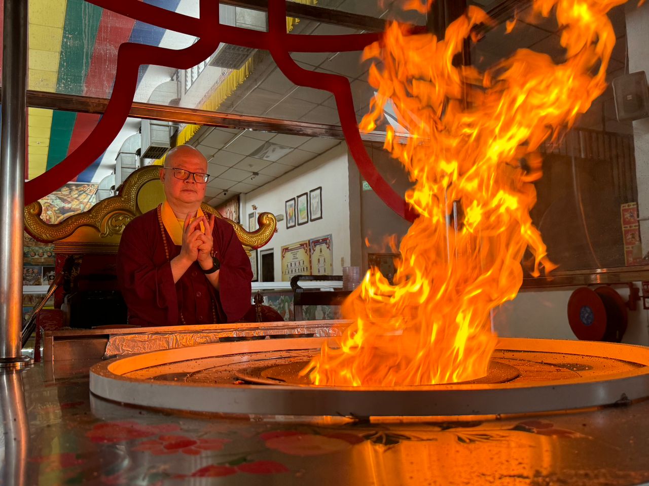 蓮太上師於2024年5月18日在馬來西亞般若雷藏寺主壇專壇「請佛住世瑤池金母護摩」,迴向師佛: