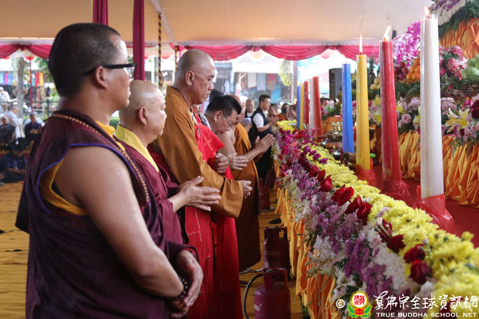 祈禱完畢,各教派的代表點燃火把,送入裝載火把的爐中,於中午十二點正啟程前往門徒佛塔。在那兒已有WALUBI中爪哇分會主席Tanto師兄,印尼佛教司長,及真佛宗的釋蓮飛上師,釋蓮轟教授師等其他教派僧眾代表一起迎接聖火,將火把送到門徒佛塔的大壇城上。