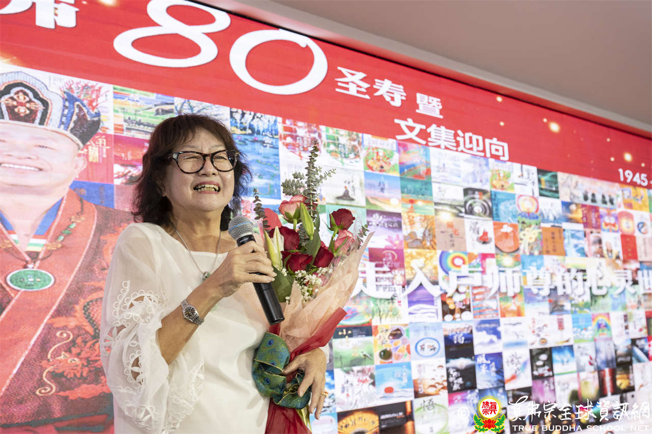 釋蓮悅上師,分享「我所知道的蓮生活佛」,她說:我們每個人用不同角度來了解的師尊是不一樣,師尊300文集對一個作家來是遙不可及的里程碑,真佛報從四月開始連載了「一個活佛的秘境」將師尊的一生,由平凡到超勝娓娓道來。另外「師尊飛越300文集導讀」,將師尊300冊文集,分為不同階段不同時期做了完整的剖析,讓同門拜讀 盧師尊的智慧書海時,能有清晰的導入點,歡迎大家來追劇!