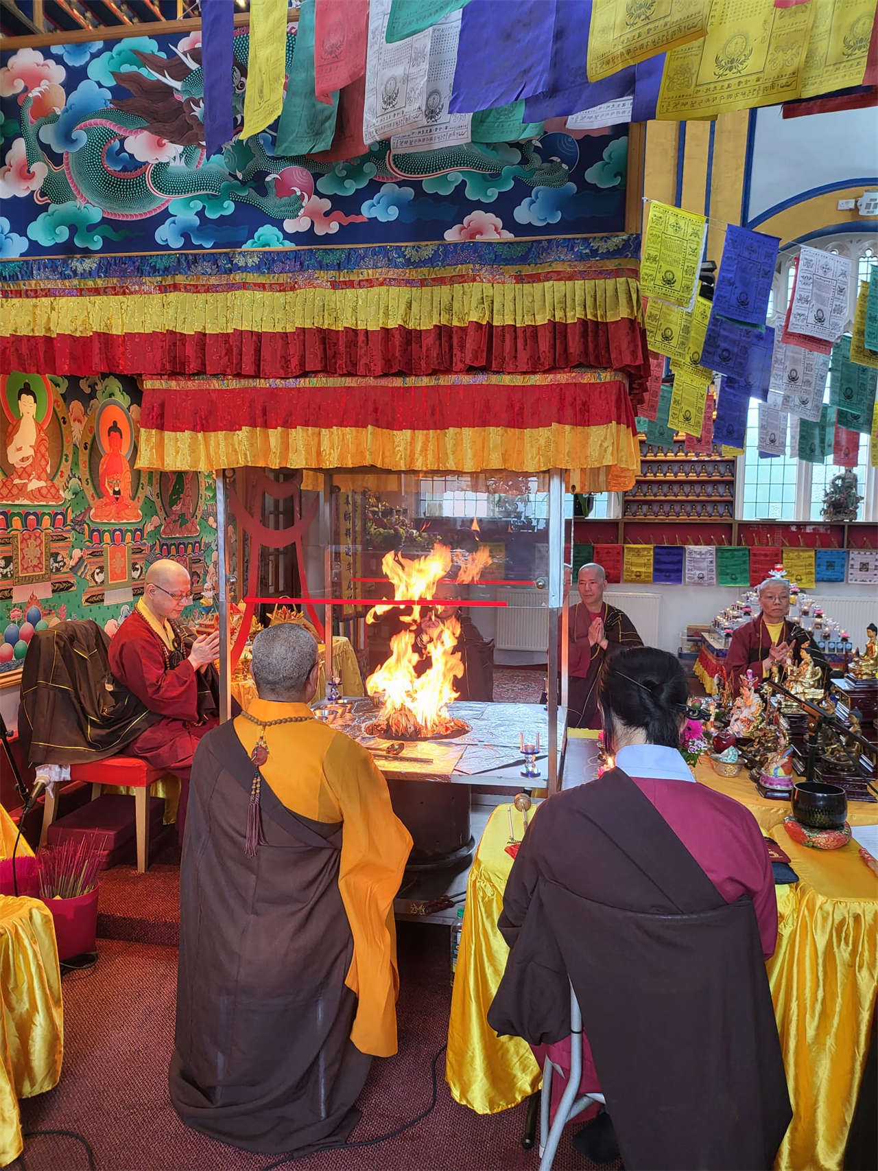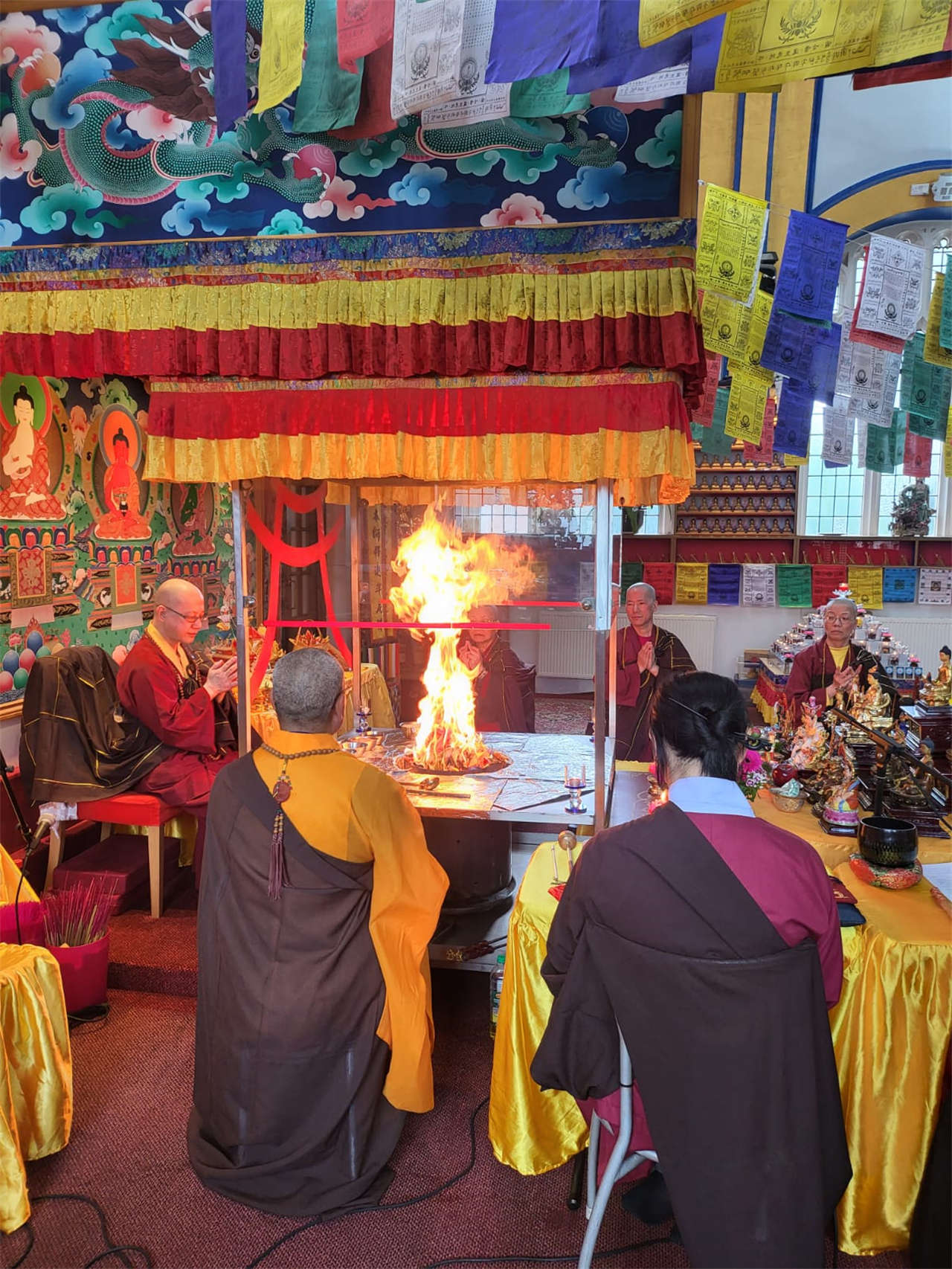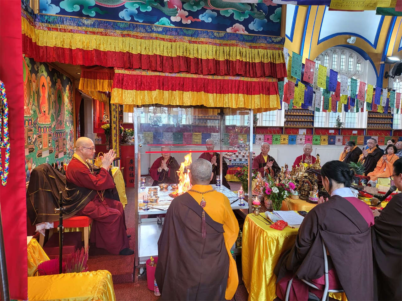 釋蓮聲上師於2024年5月19日在英國真渡雷藏寺主壇專壇「請佛住世瑤池金母護摩」,迴向師佛: