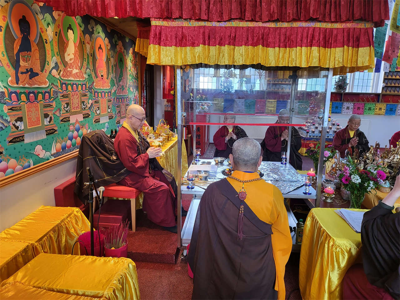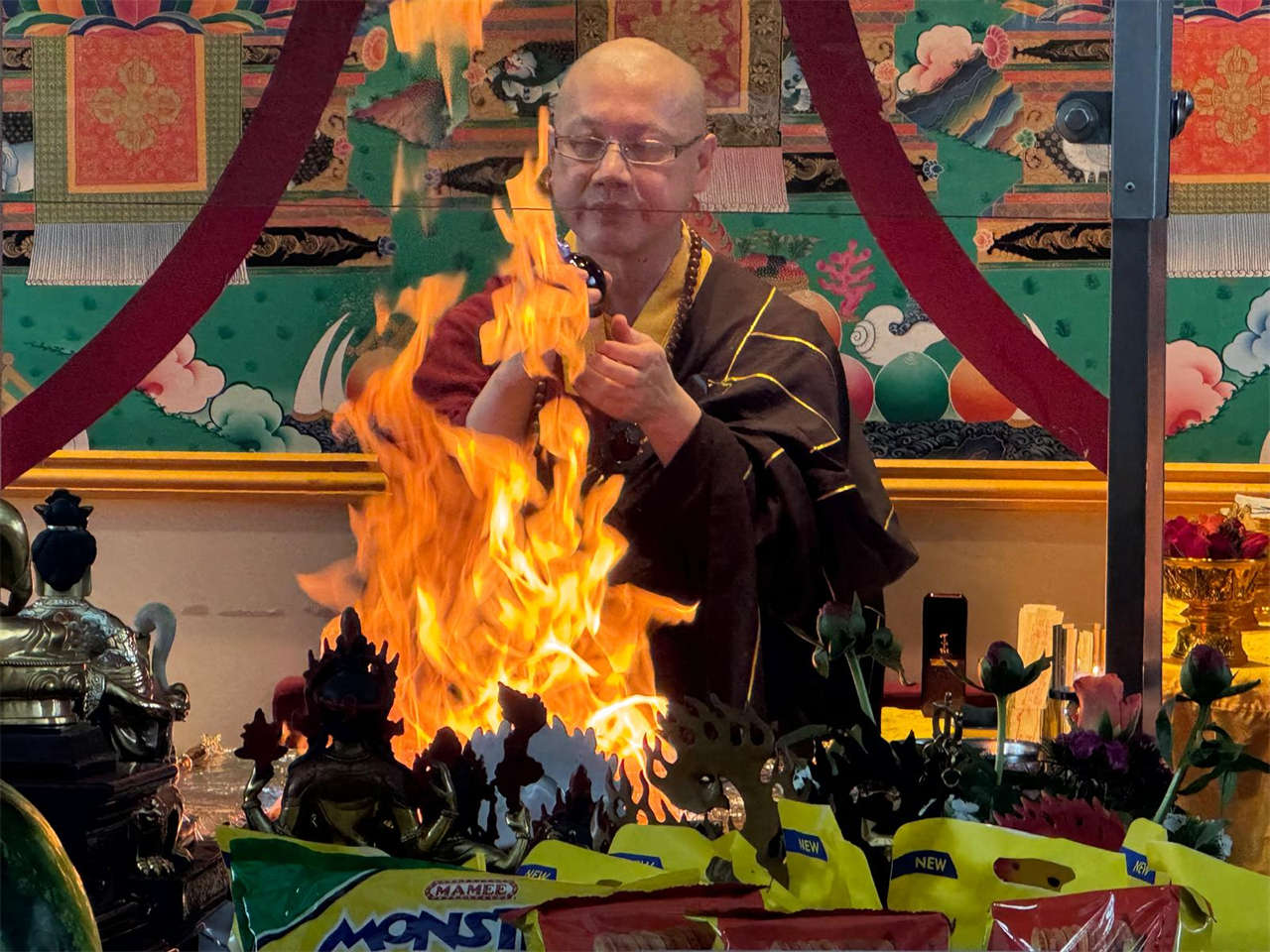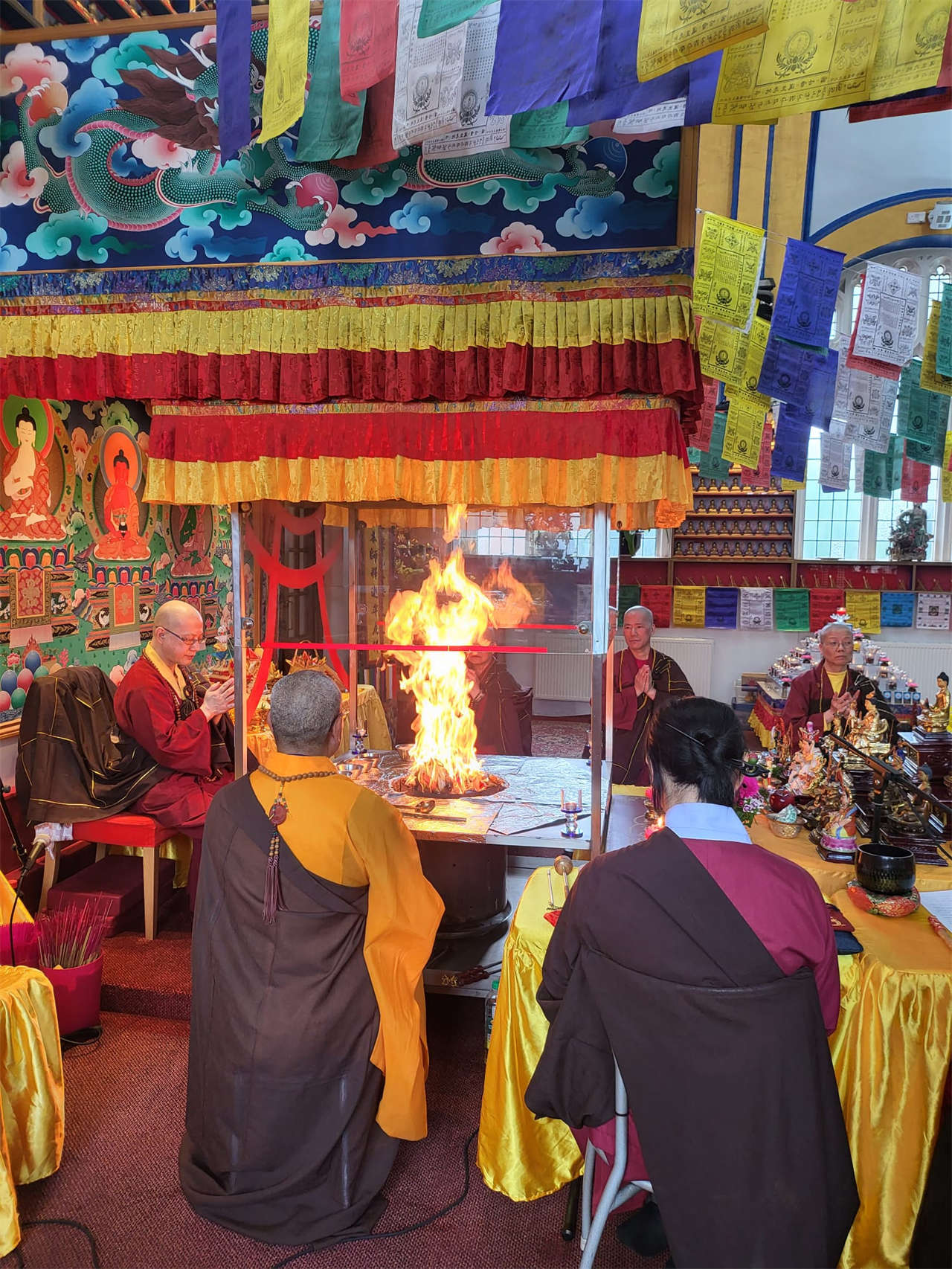釋蓮聲上師於2024年5月19日在英國真渡雷藏寺主壇專壇「請佛住世瑤池金母護摩」,迴向師佛: