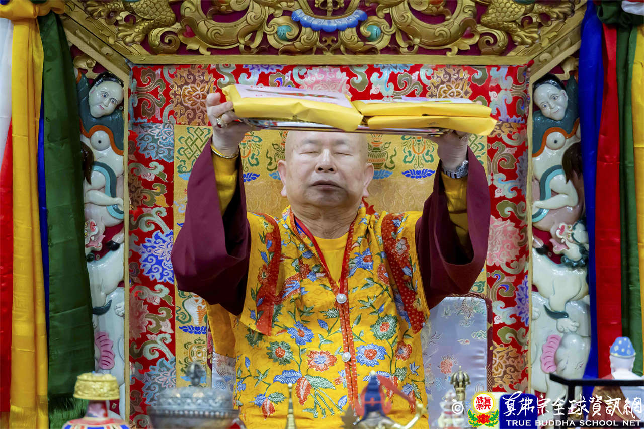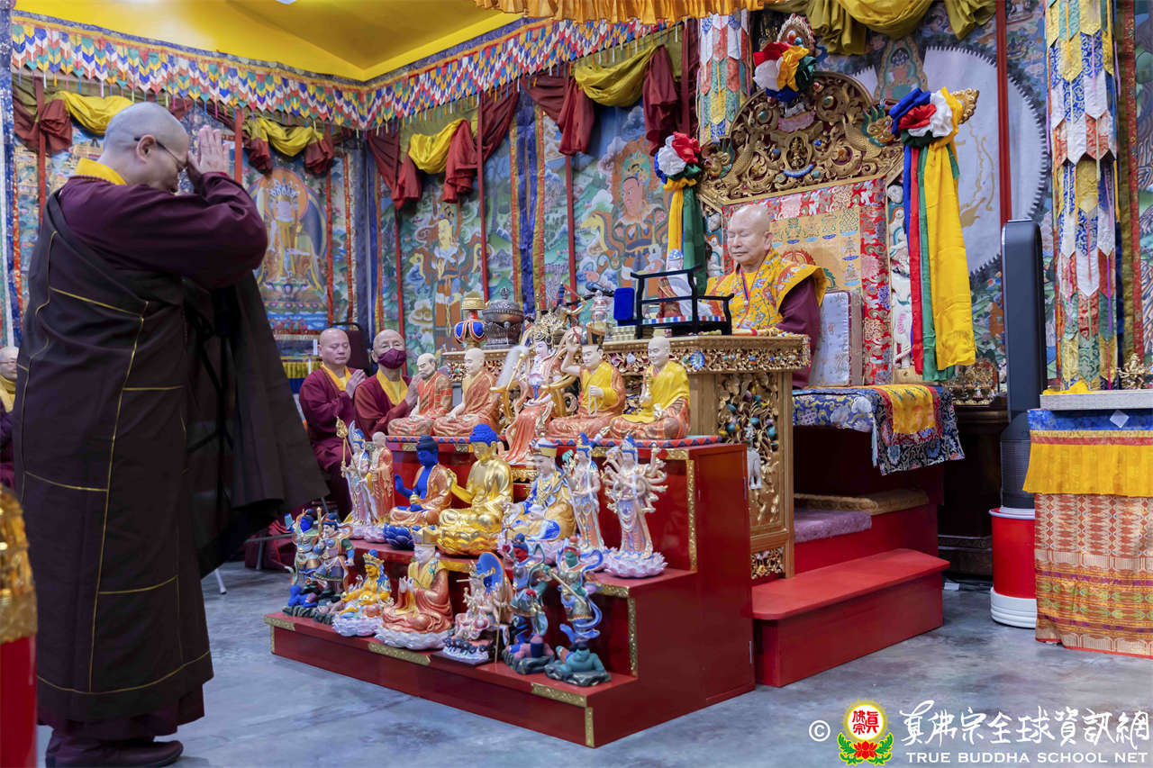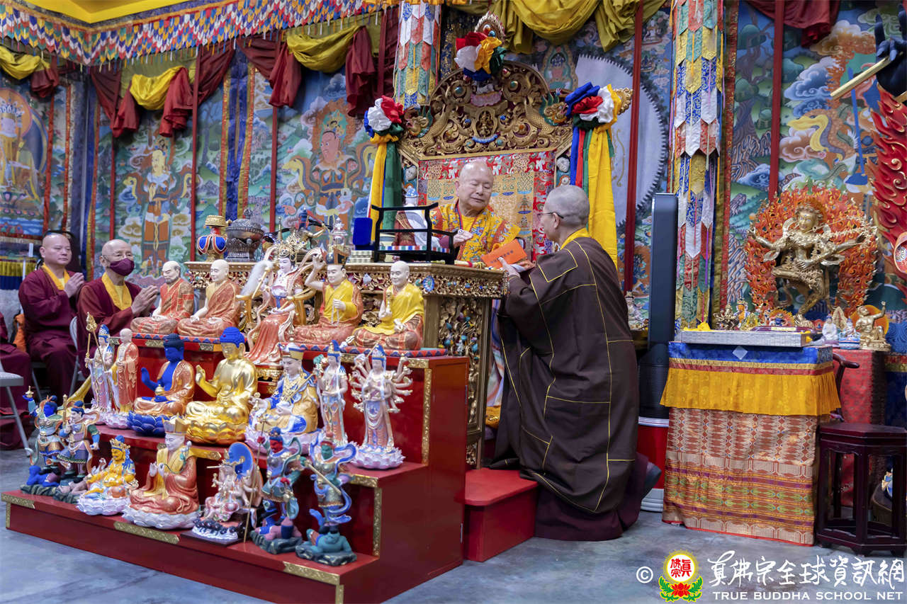 法會最後,法王移駕到Zoom前與弟子們互動,弟子們誠摯地感恩法王開示,並傾訴心中的感恩與敬意,法王慈悲賜授「文殊師利菩薩法」灌頂,法會圓滿結束。