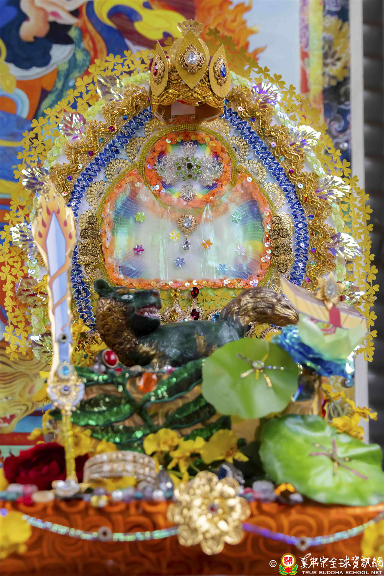 今日護摩主尊文殊師利菩薩是不可思議解脫菩薩的上首,以智慧聞名於大乘佛教,祂與普賢菩薩並列,共同侍奉釋迦牟尼佛,是佛陀的兩大脇侍之一,經常以「華嚴三尊」的形象出現。文殊師利菩薩在《維摩詰經》中是第二男主角。西藏黃教祖師「宗喀巴祖師」被視為文殊菩薩的化身,而甘丹赤巴則是宗喀巴的代表,第一百世的甘丹赤巴曾在西雅圖與師尊一同主持法會,甘丹赤巴曾將白色哈達拋向彩虹雷藏寺壇城,這條白色哈達不偏不倚落在文殊師利菩薩寶劍上,過了20幾年了這條哈達還在寶劍上,文殊師利菩薩力量不可思議。
