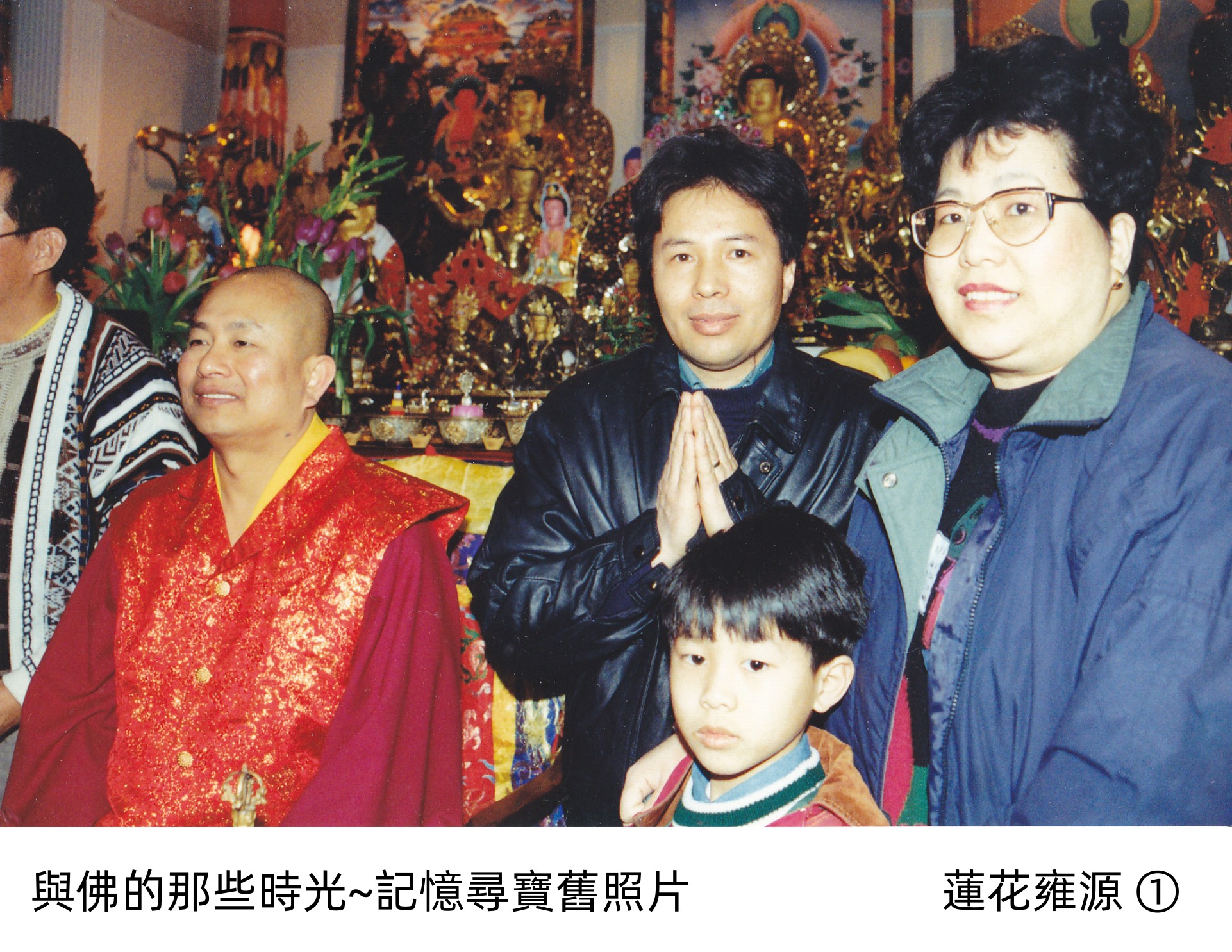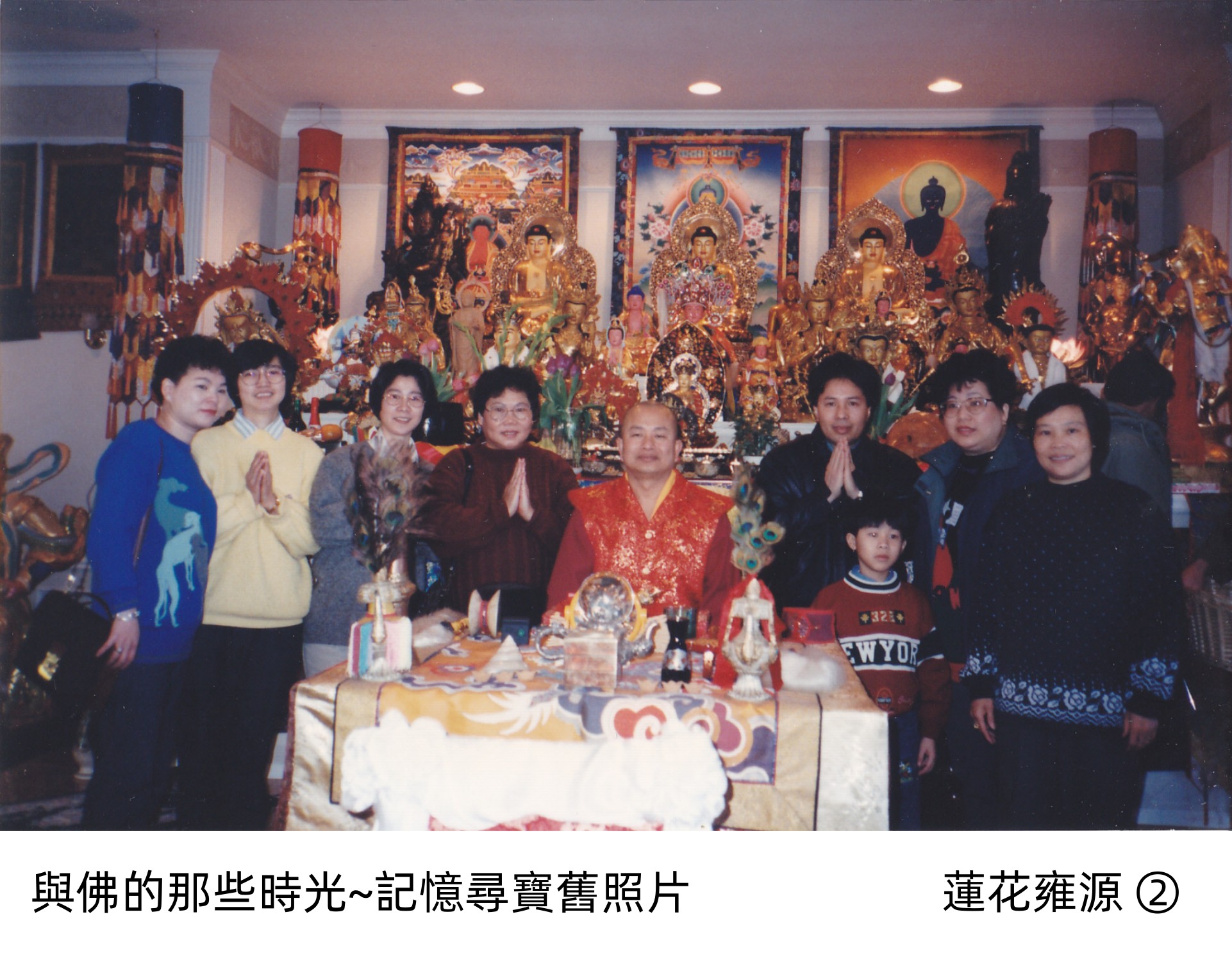 簡述 ① :我們一家人在1995年第一次去西雅圖朝聖參加師尊當年傳授大威德金剛大法,四重結界,二灌拙火法灌頂。當天師尊師母蒞臨彩虹山莊,師尊介紹壇城佛菩薩,法器及唐卡。師尊師母和上師法師同門唱歌,然後每位同門跟師尊合照。