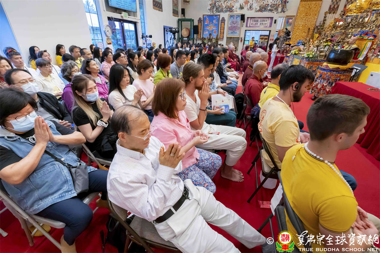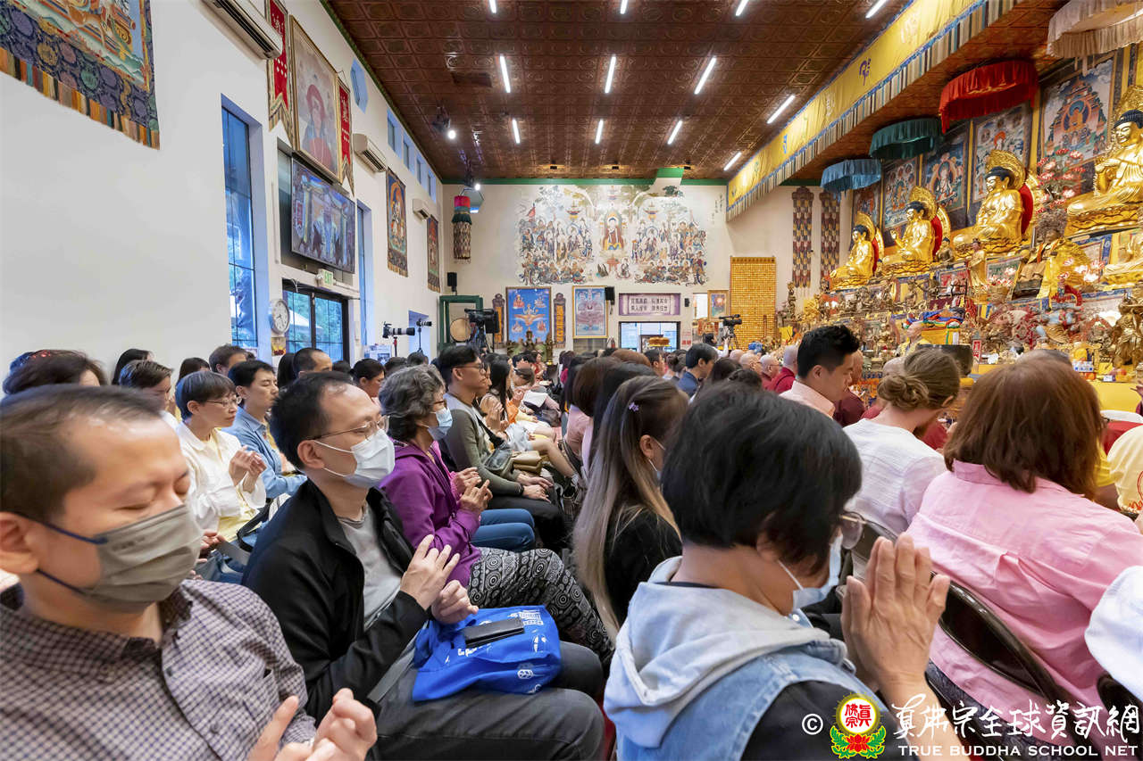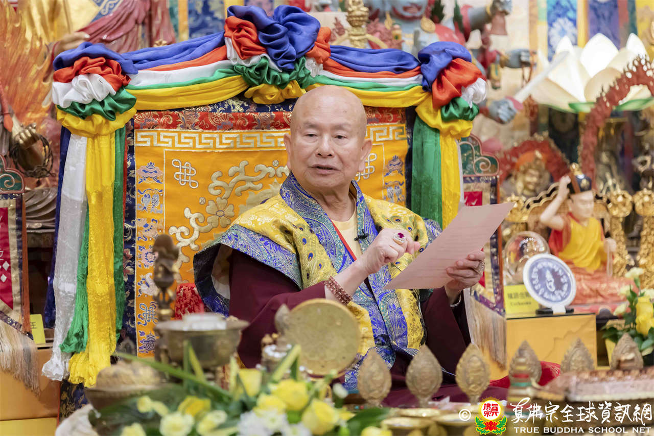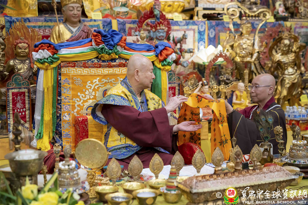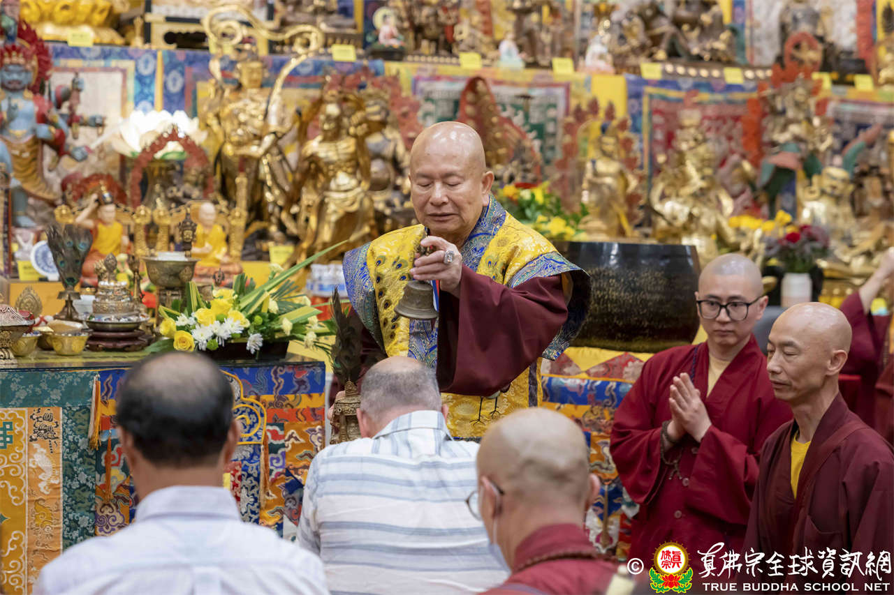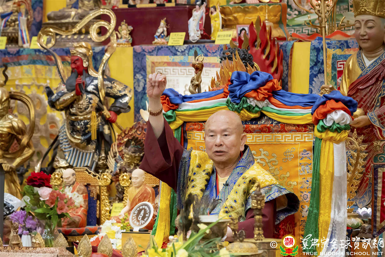 聖尊在寶貴精妙的法語開示結束後,為求皈依者賜授皈依灌頂、加持大悲咒水,及開光佛像,最後以拂塵摩頂加持大眾。