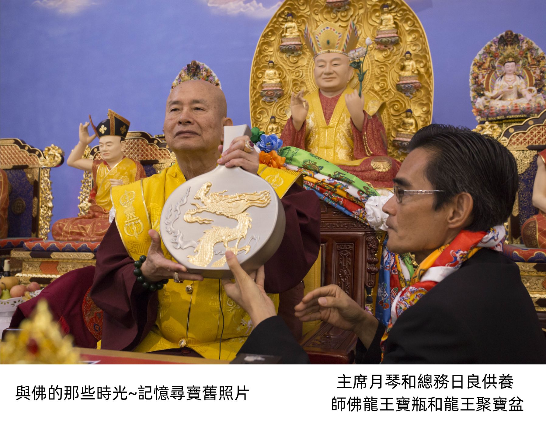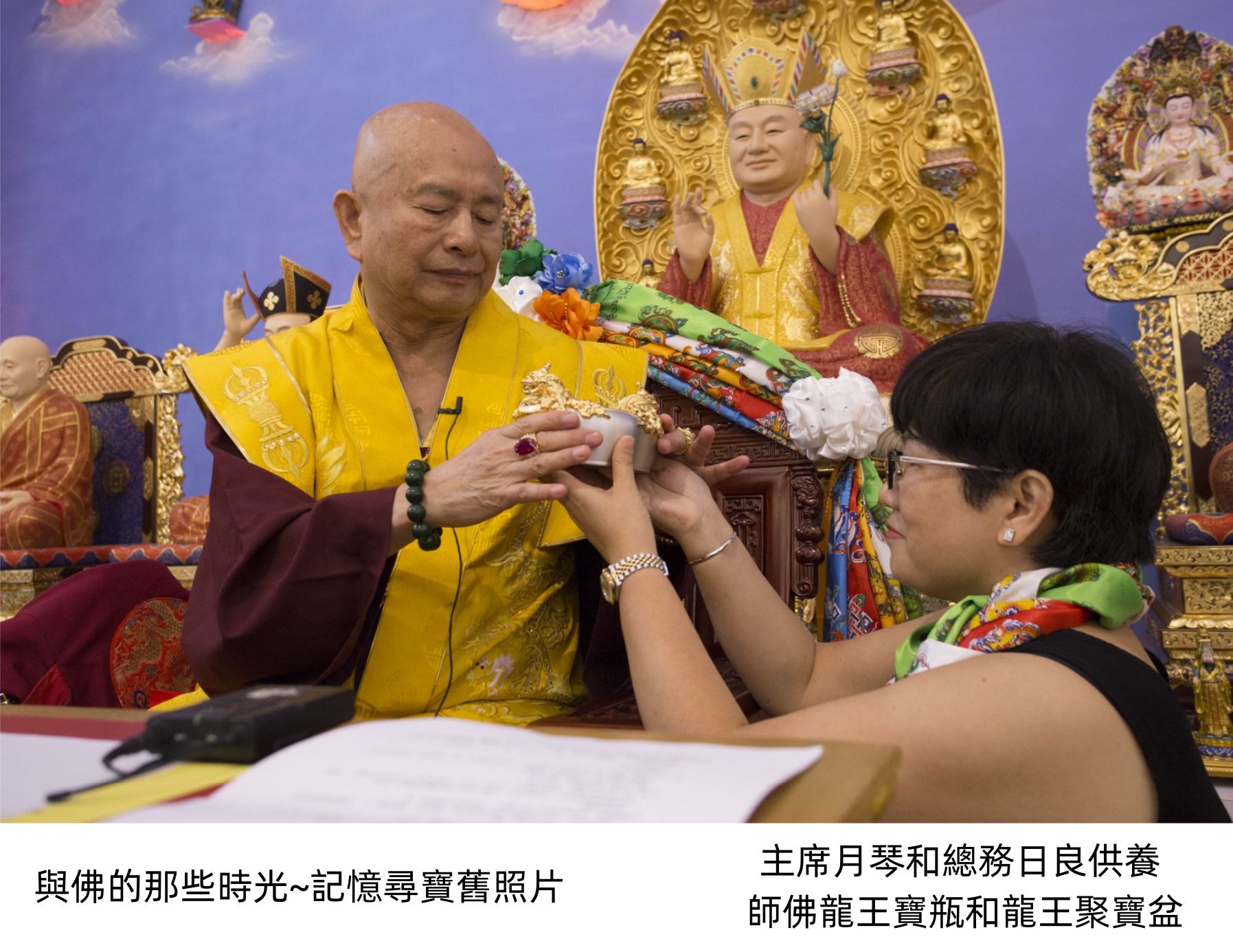 此次灌頂主尊為【龍種上尊王佛】,所以呈上龍的寶瓶和聚寶盆為供養。