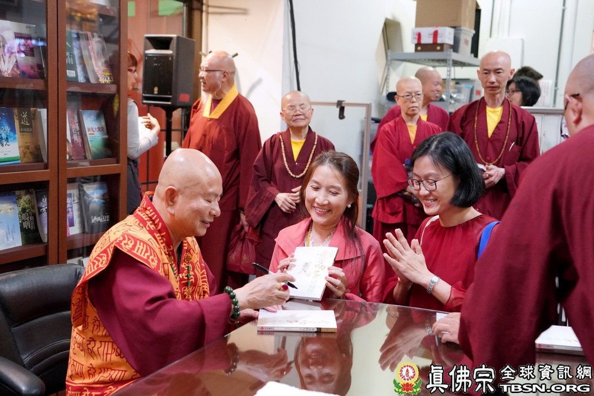開示結束後,聖尊為大眾賜授皈依灌頂、加持大悲咒水和佛像開光。聖尊還特地為大家簽第266冊新書「黃金的句子」,這本書裡全都是珍貴的金句,同門火速搶購,人人如獲至寶般,祈請聖尊簽名加持。臨行前,聖尊為大家摩頂加持,為這法喜充滿、法味縈繞不絕的週六夜晚,畫上了完美的句點。