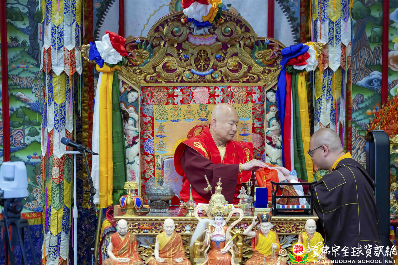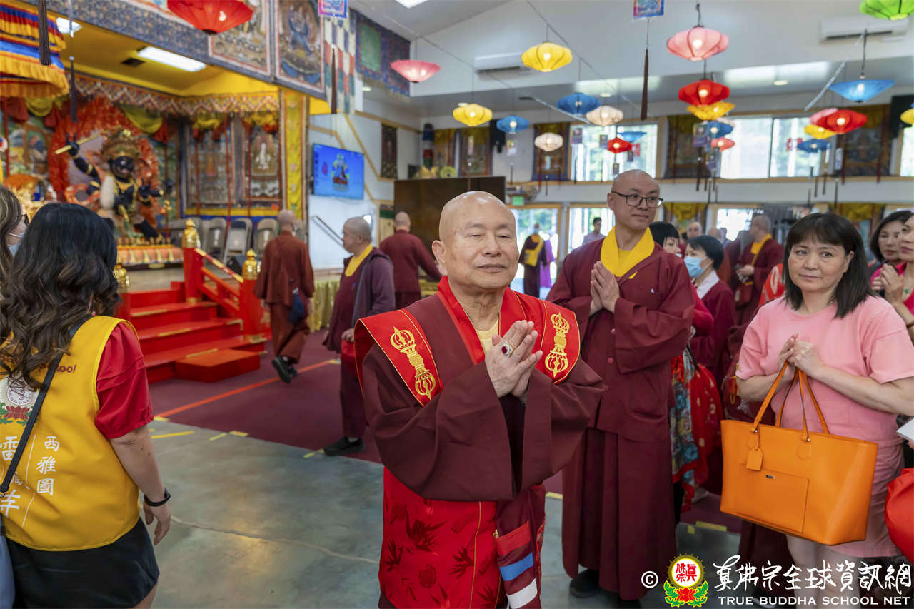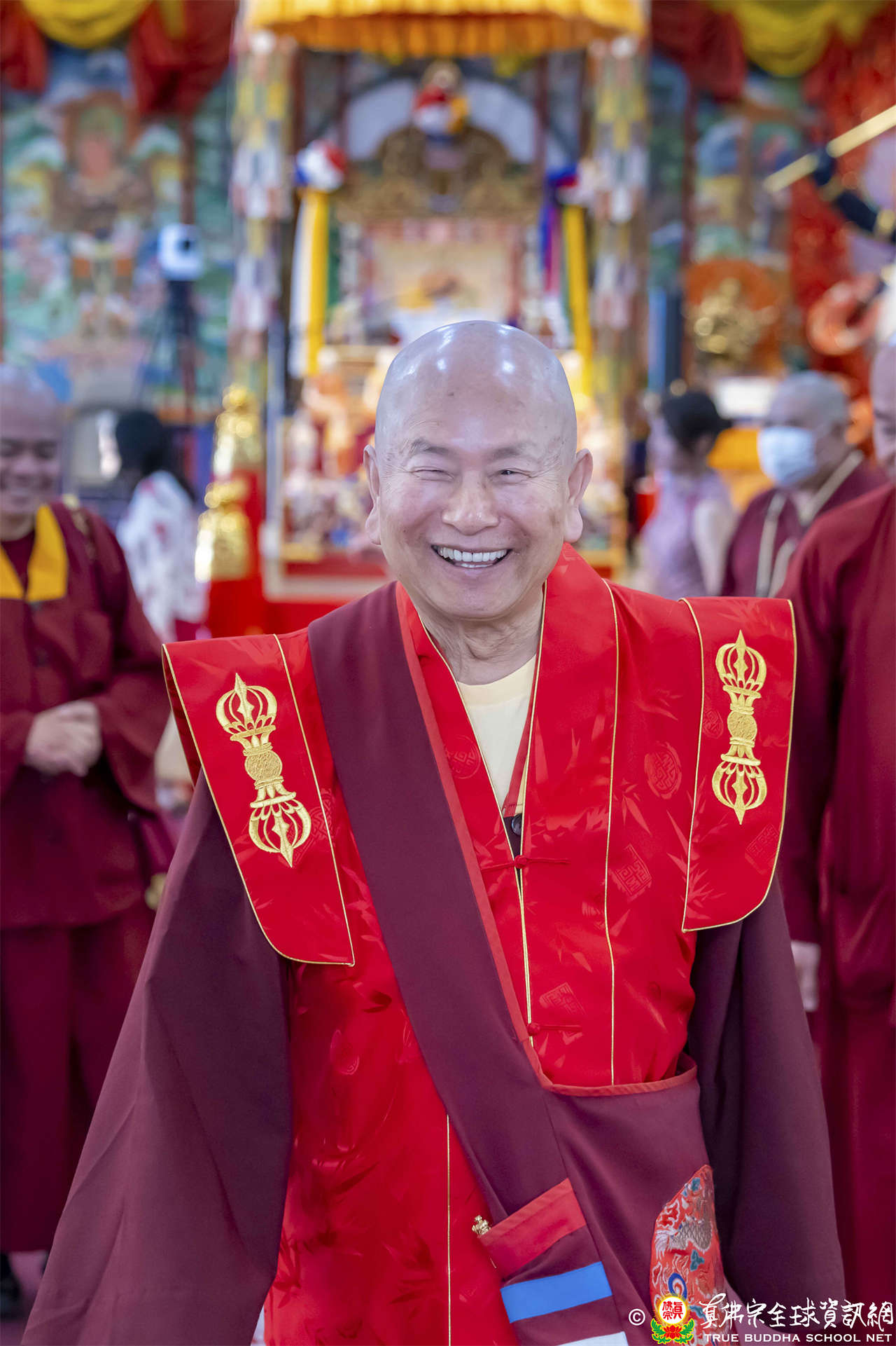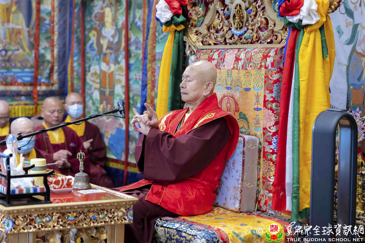 法王開示至此,護摩法會圓滿結束。接著,法王與線上的弟子打招呼,並為現場出席者賜授蓮華生大士法灌頂。