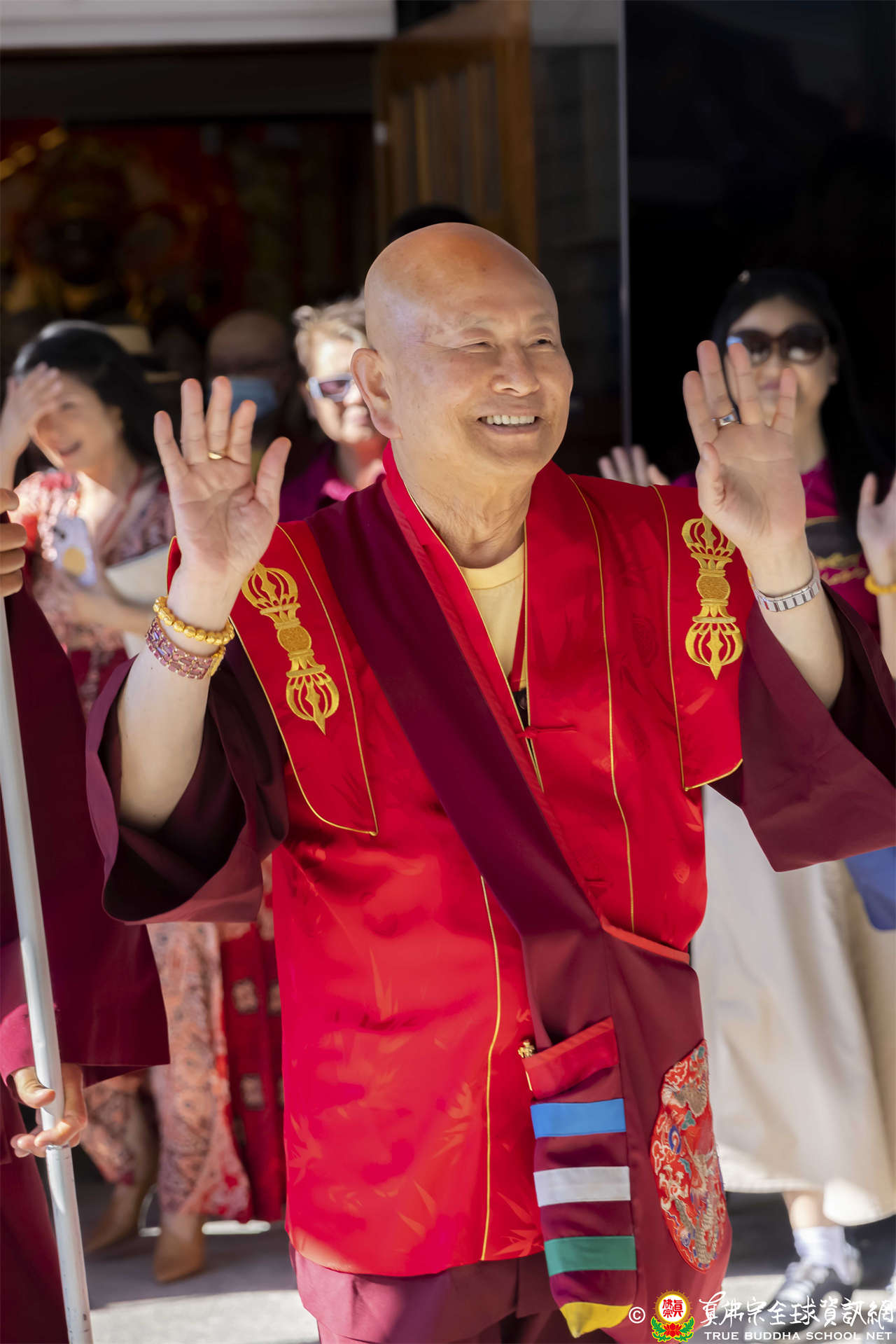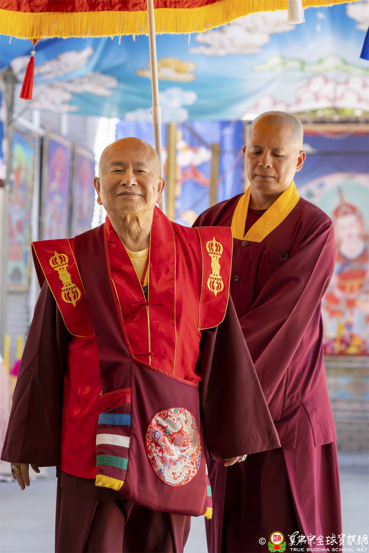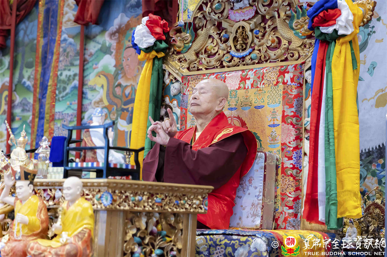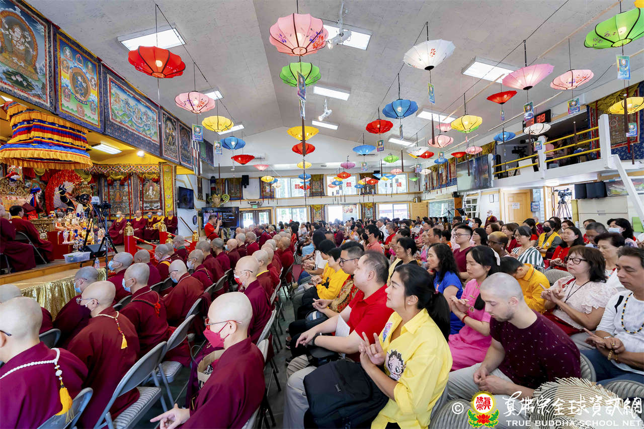 法王開示至此,護摩法會圓滿結束。接著,法王與線上的弟子打招呼,並為現場出席者賜授蓮華生大士法灌頂。