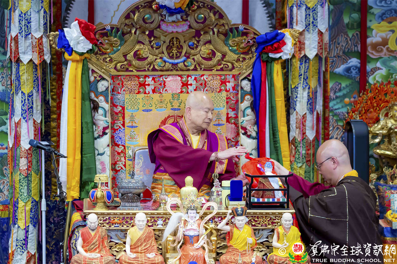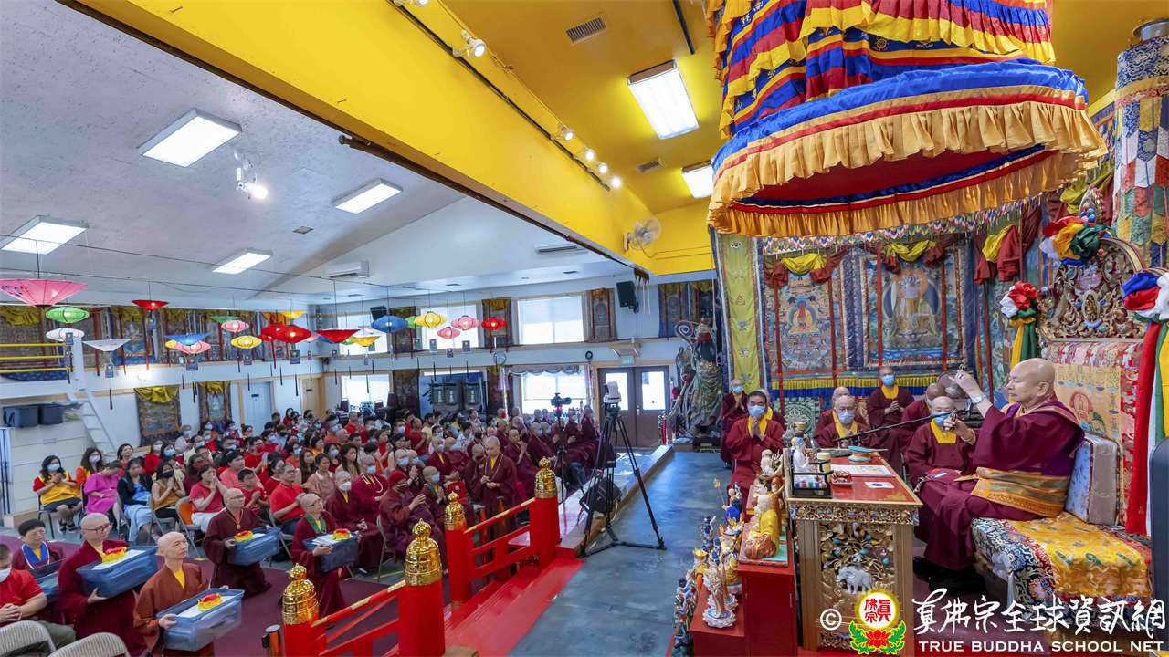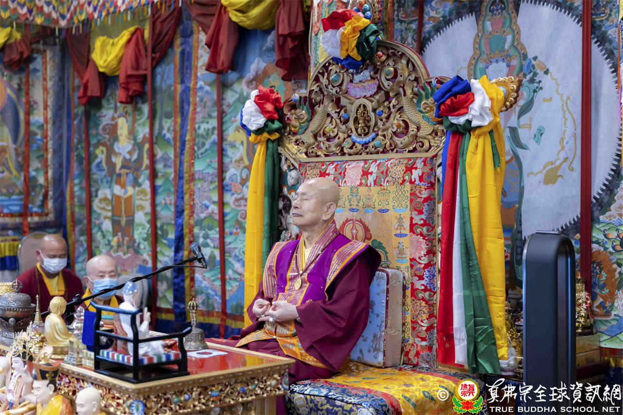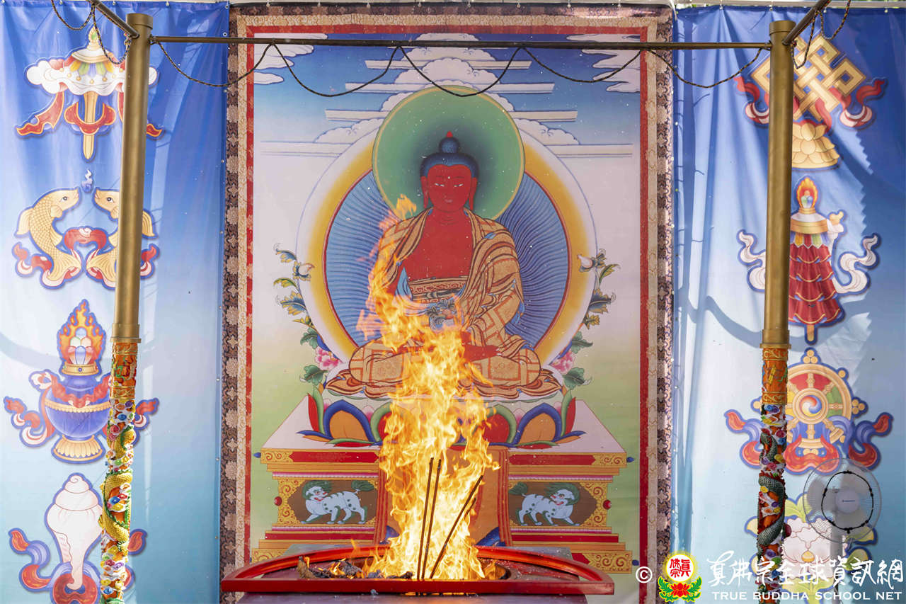 精彩的開示後,法王與網路線上弟子互動,並慈悲賜授現場弟子「阿彌陀佛法及千艘法船法灌頂」,與會眾等法喜充滿、心開意解,護摩法會圓滿吉祥。