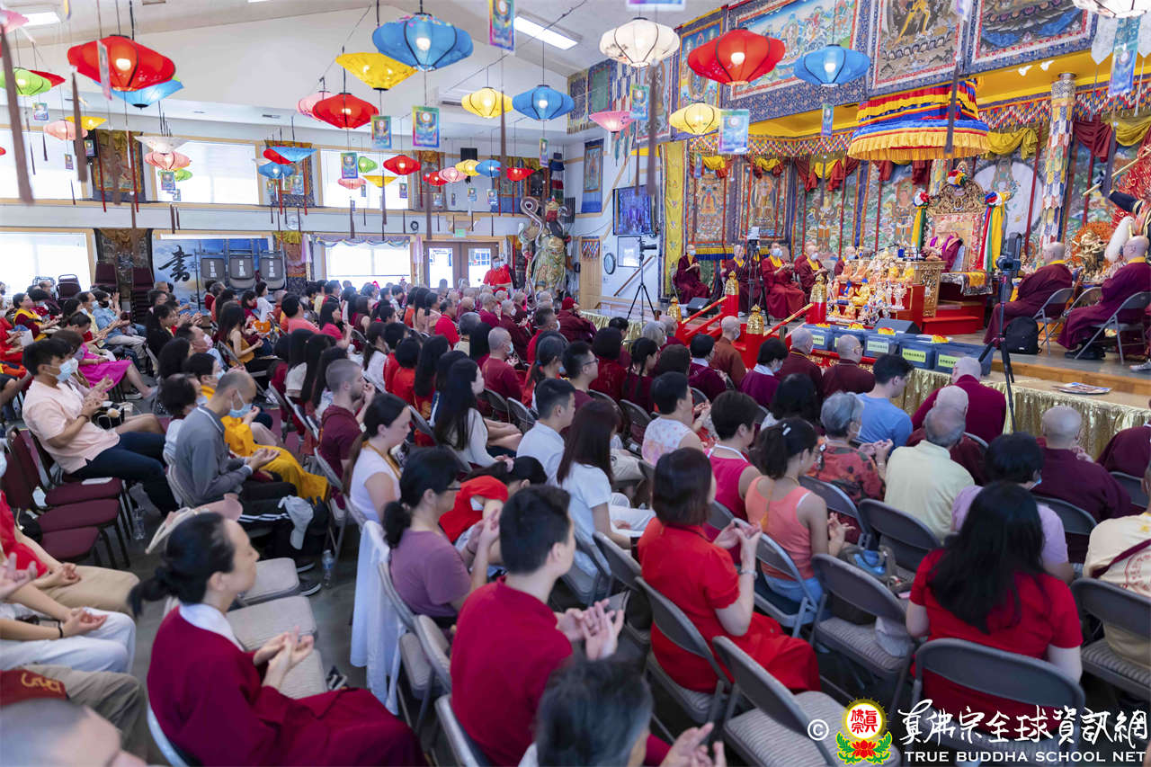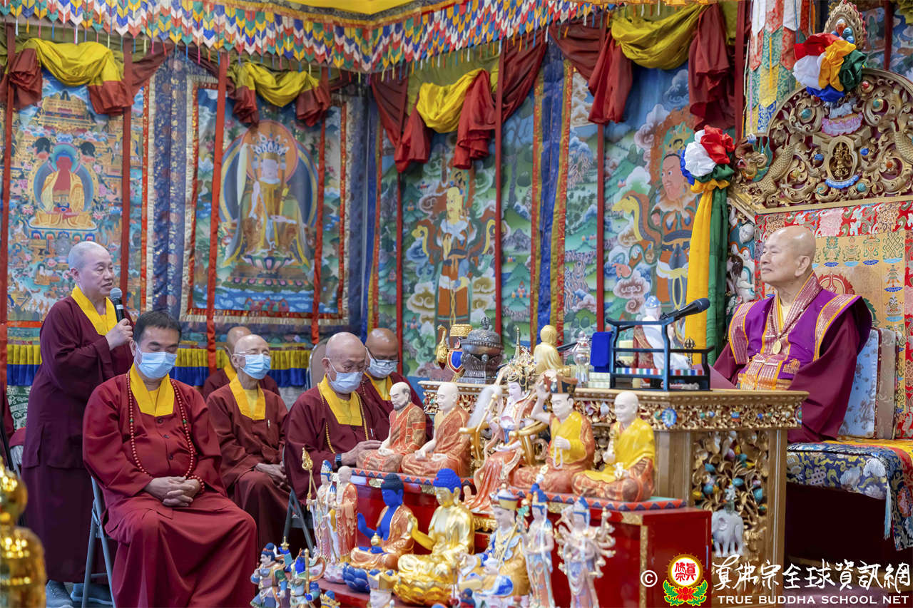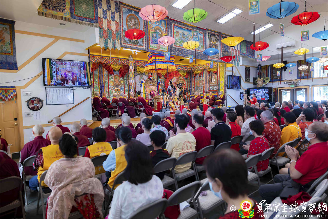 精彩的開示後,法王與網路線上弟子互動,並慈悲賜授現場弟子「阿彌陀佛法及千艘法船法灌頂」,與會眾等法喜充滿、心開意解,護摩法會圓滿吉祥。