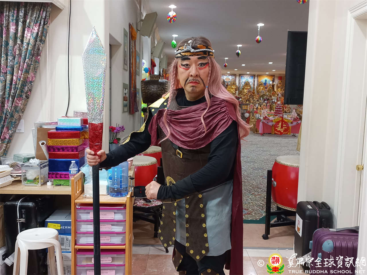 為了讓飾演蒙古大軍的演員更加逼真,在演出當天情商呂友蓮師姐、Soo Soo師姐(師佛常提到的玄冥二老)來幫忙化妝,為每位將士畫上濃濃的眉毛,黑黑的眼線,立馬就感到氣勢增長不少。