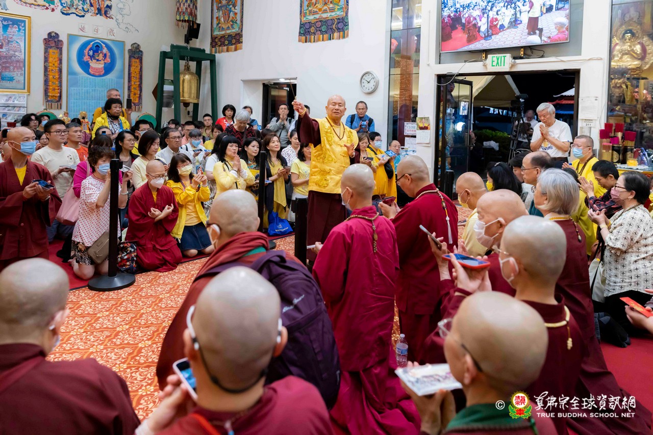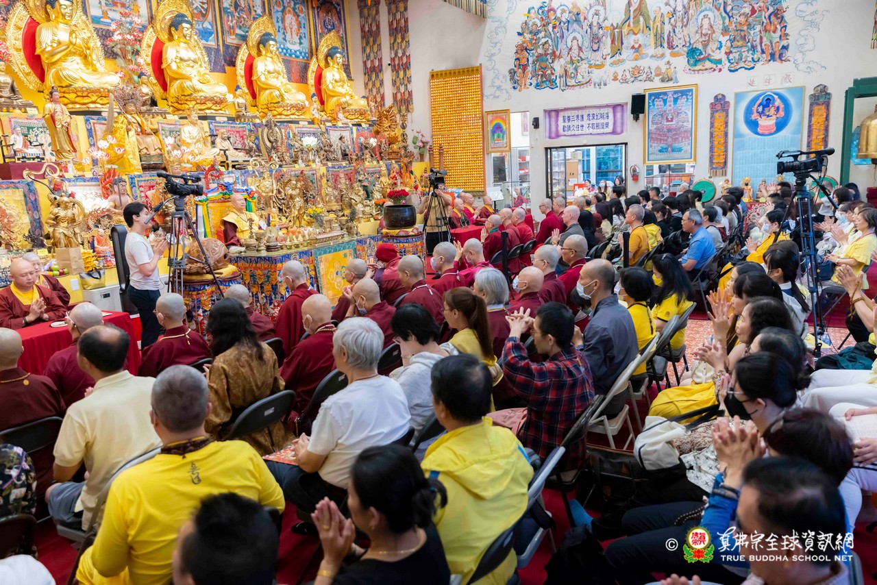 2024年8月3日晚上八點,西雅圖的祖廟燈火通明,來自世界各地的同門在大雄寶殿內虔誠合掌恭迎無上法王聖尊蓮生活佛盧勝彥到來,為全球四衆弟子主持地藏王菩薩本尊法同修。同修在圓滿咒的持誦聲中吉祥圓滿,大眾跟隨聖尊敬禮傳承祖師、壇城三寶、今天修法本尊地藏王菩薩,個個全心聆聽根本傳承上師寶貴的法語開示。