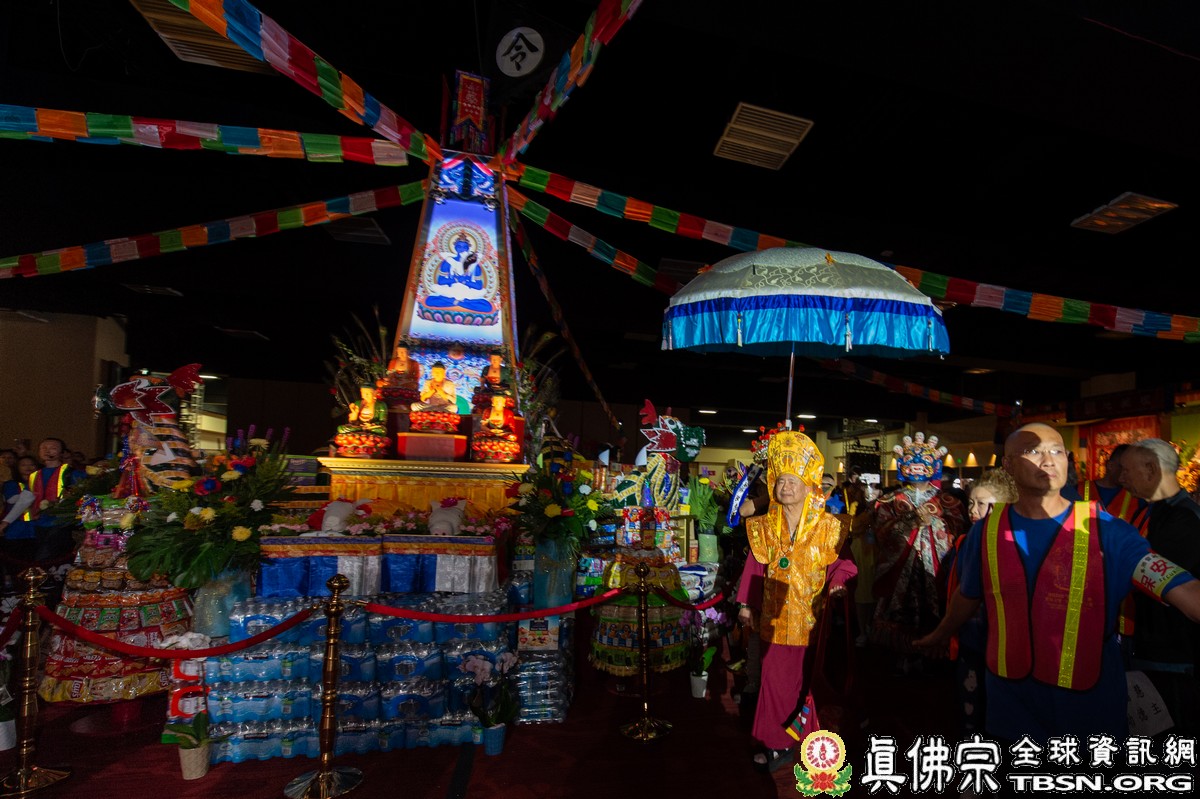 此次法會在屋崙會議中心(Oakland Convention Center)舉行,共有兩百多位上師、法師與真佛宗弟子共約5000人親往護壇,會場設立七大壇城(大佛壇、八大菩薩壇、十八羅漢壇、瑤池金母壇、地藏壇、三界天壇和金剛護法壇),再加上法會主壇城,以及往生壇和延生壇,共有十座壇城,每座壇城皆有一尊焦面大士(觀世音菩薩慈悲化現)鎮守,每壇皆十米高,供養如山如海的各式供品,氣勢壯觀令人讚嘆,中央「大佛壇」的至高點豎立黑令旗,攝令所有鬼神眾與會,展開前所未見的【羅天大醮】。