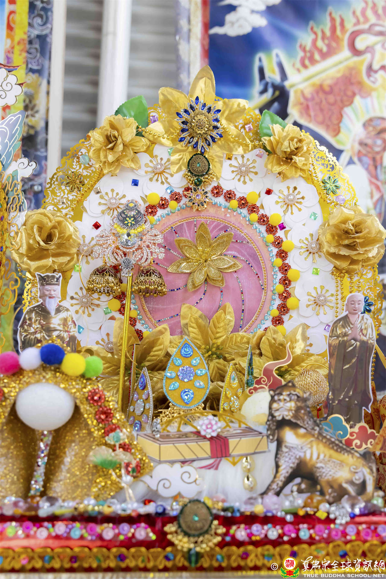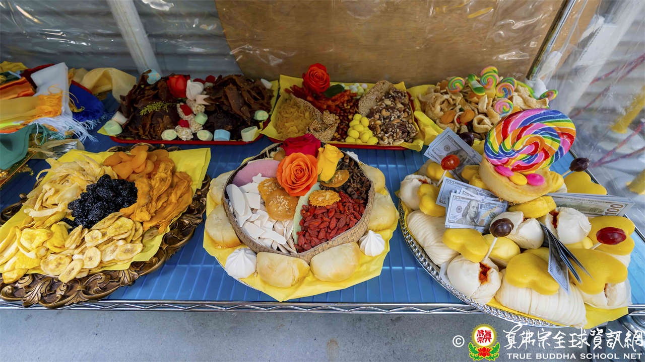 在這次法會中,法王強調了中元超度的重要性。中元超度儀式中,首先要有水,主壇法師要用水來遍灑甘露。第二個要有糖果,要把糖果化為所有的食物,供養所有的幽冥眾。第三個要有米,代表是所有的資糧。在一般的超度裡面,需進行灑甘露、灑糖果、灑米的儀式。然而,當儀式材料不齊全時,法王通過變化心力,讓所有物品化為甘露、資糧和蓮花,滿足眾生的需要。這次的中元節地藏王菩薩超度做得很圓滿,願所有的幽冥眾全部往生佛國淨土,如果還有剩下來的,就回去跟法王的千艘法船一起走。