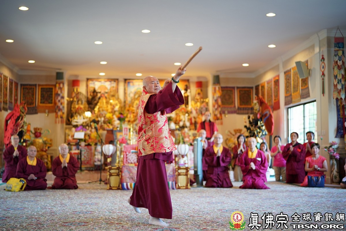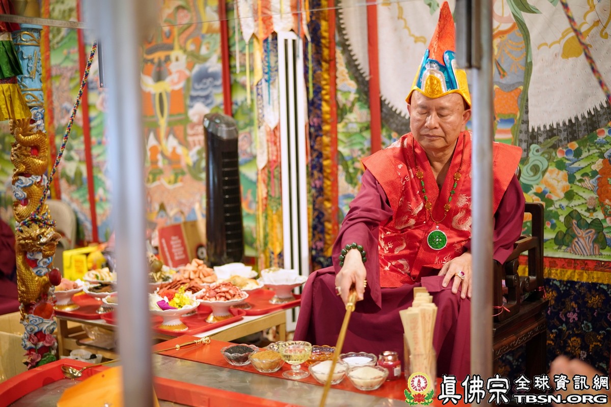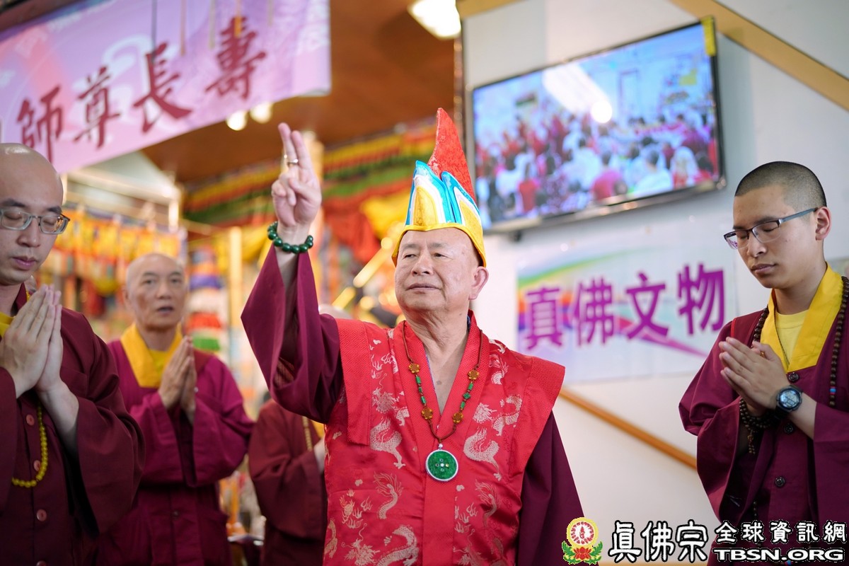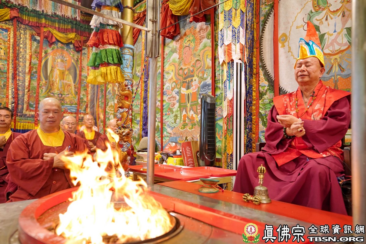 【TBSN西雅圖訊】2018年6月24日下午,美國西雅圖彩虹雷藏寺恭請根本上師蓮生佛主壇「長壽佛護摩大法會」,四眾嘉賓雲集。聖尊蓮生佛並於護摩後迴向,祈請長壽佛加持6月30日羅天大醮法會吉祥圓滿。