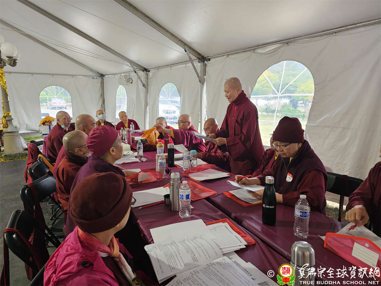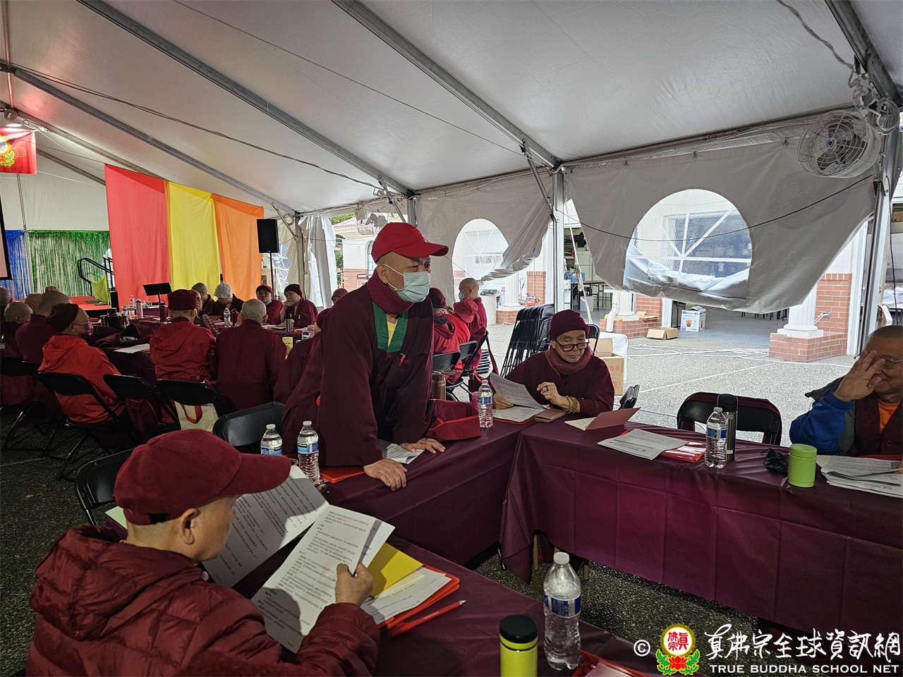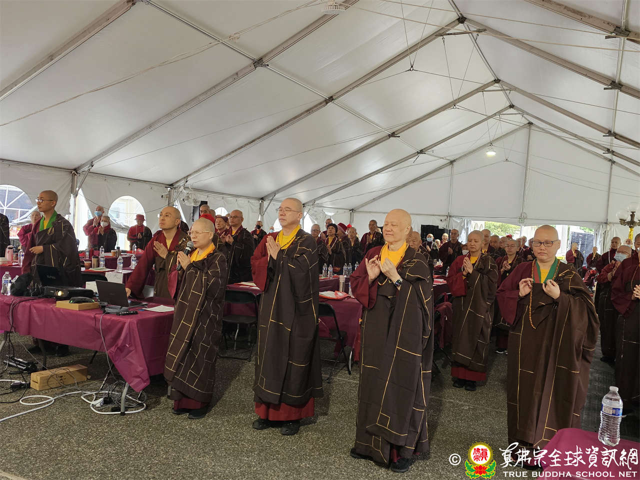 第一天開幕,首先由長老蓮傳上師、教育處處長蓮訶上師、財政處處長蓮者上師,帶領教授師法師團全體批上戒衣誦戒。接著蓮追教授師、蓮屸法師帶領唱真佛宗宗歌「感恩真佛」,僧團齊聚一堂的場面,非常莊嚴令人感動。