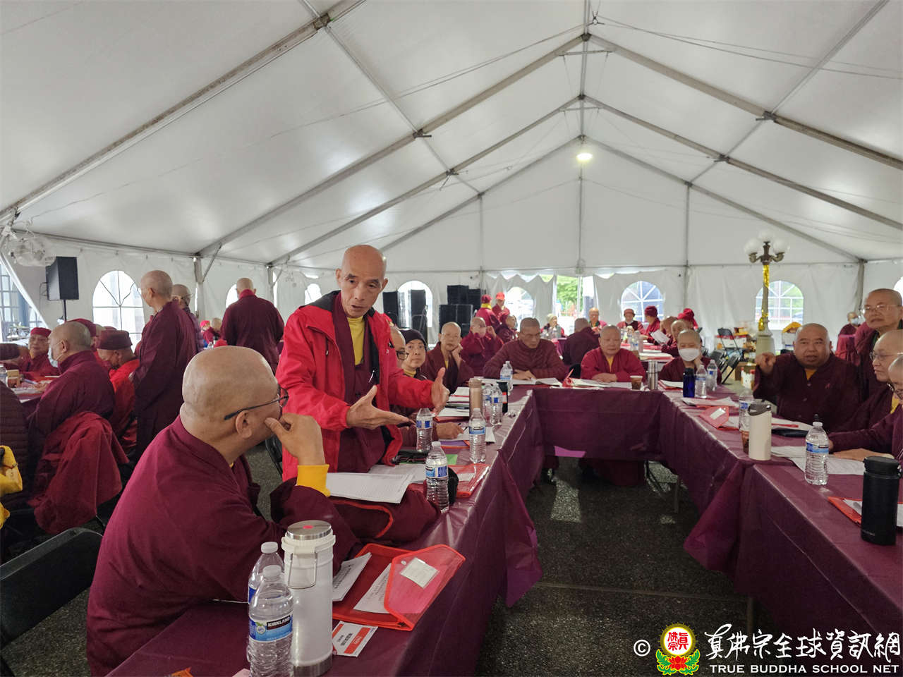 第一次分組討論時,只見各組法師針對議題,紛紛發表意見,除了少數可能因為語言因素,需要其他法師從旁協助翻譯之外,討論非常熱烈。本次代表該組的法師皆屬於資深法師,上台報告時,只見個個台風穩健、口條清晰、條理分明。這亦是教育處設計本次課程希望達到的目的,讓法師們互相學習,能多發表及訓練口才。