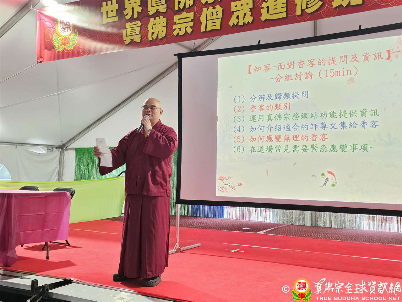 由第六屆世界真佛宗宗務委員會教育處主辦「法師進修班」,分別邀請授課老師。蓮一上師:「知客的重要」、長老蓮僧上師:「真佛祈禱會-首次亮相」、長老蓮滿上師、長老蓮傳上師:「入菩薩行論簡介」、賴泓霖(Jimmy Lai)律師:「僧眾遺囑介紹」、長老蓮哲上師:「僧眾在宗派的責任」、長老蓮栽上師:「如何引導新僧」。