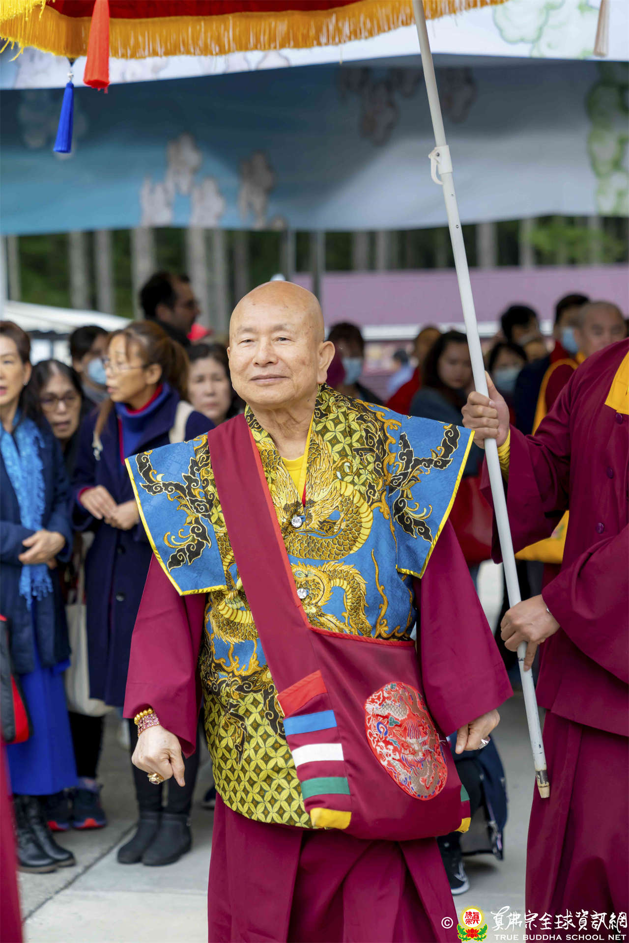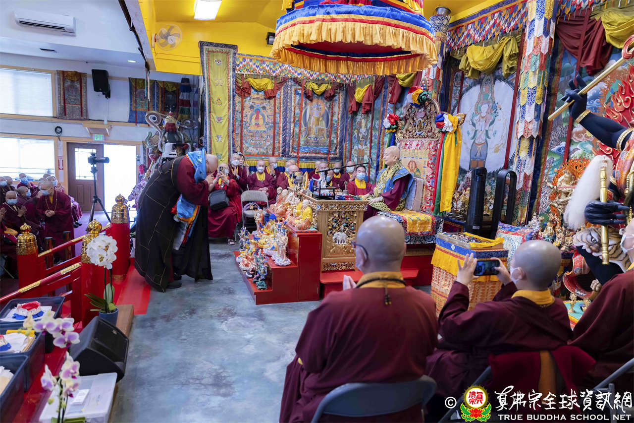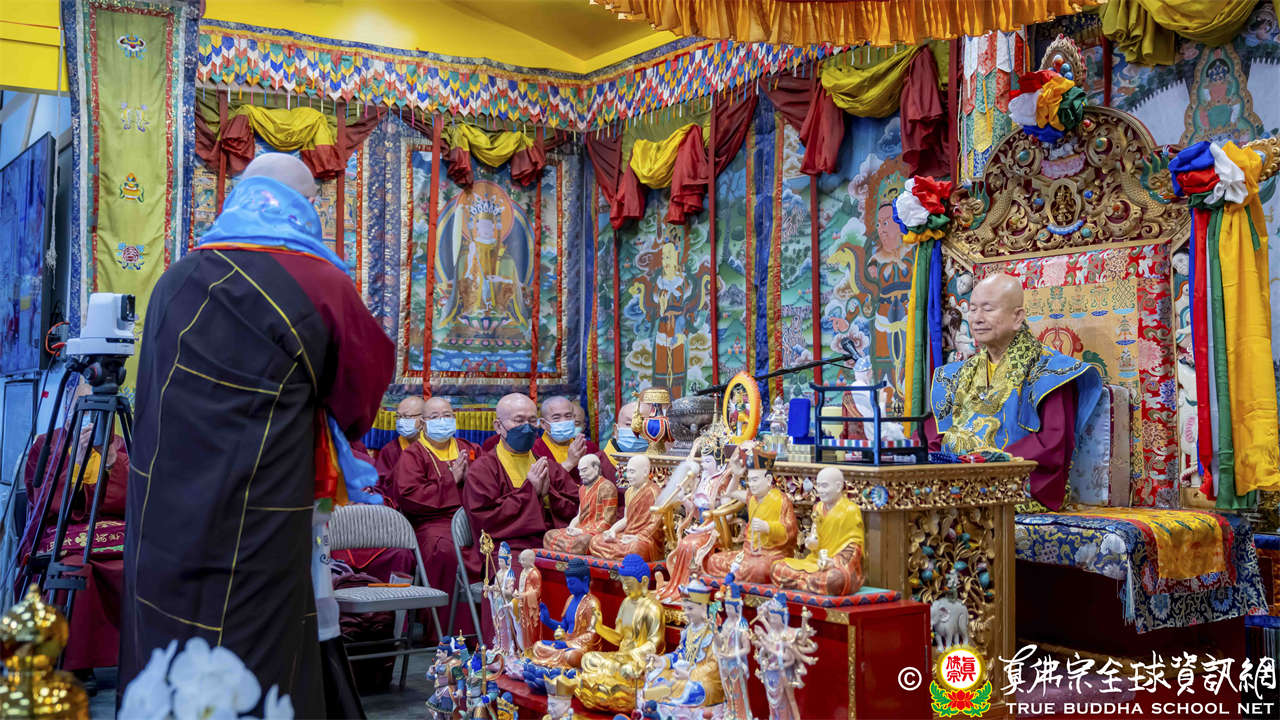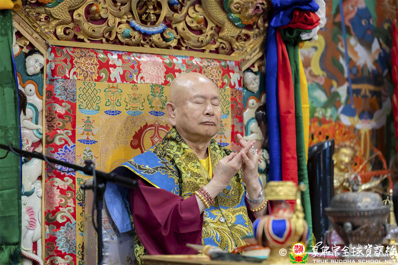 接著法王介紹法會主尊時輪金剛說道,「這是密教難得殊勝的大法,祖師也囑咐要將之廣傳世界五大洲。按照祖師所傳,主持時輪金剛法,必須十個指頭都必須帶上戒指。」