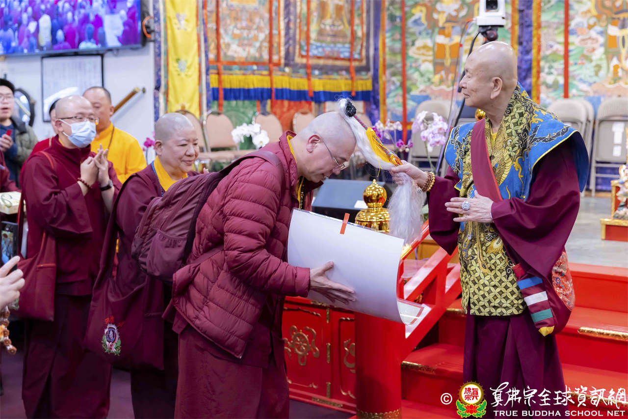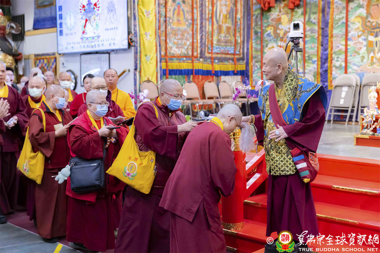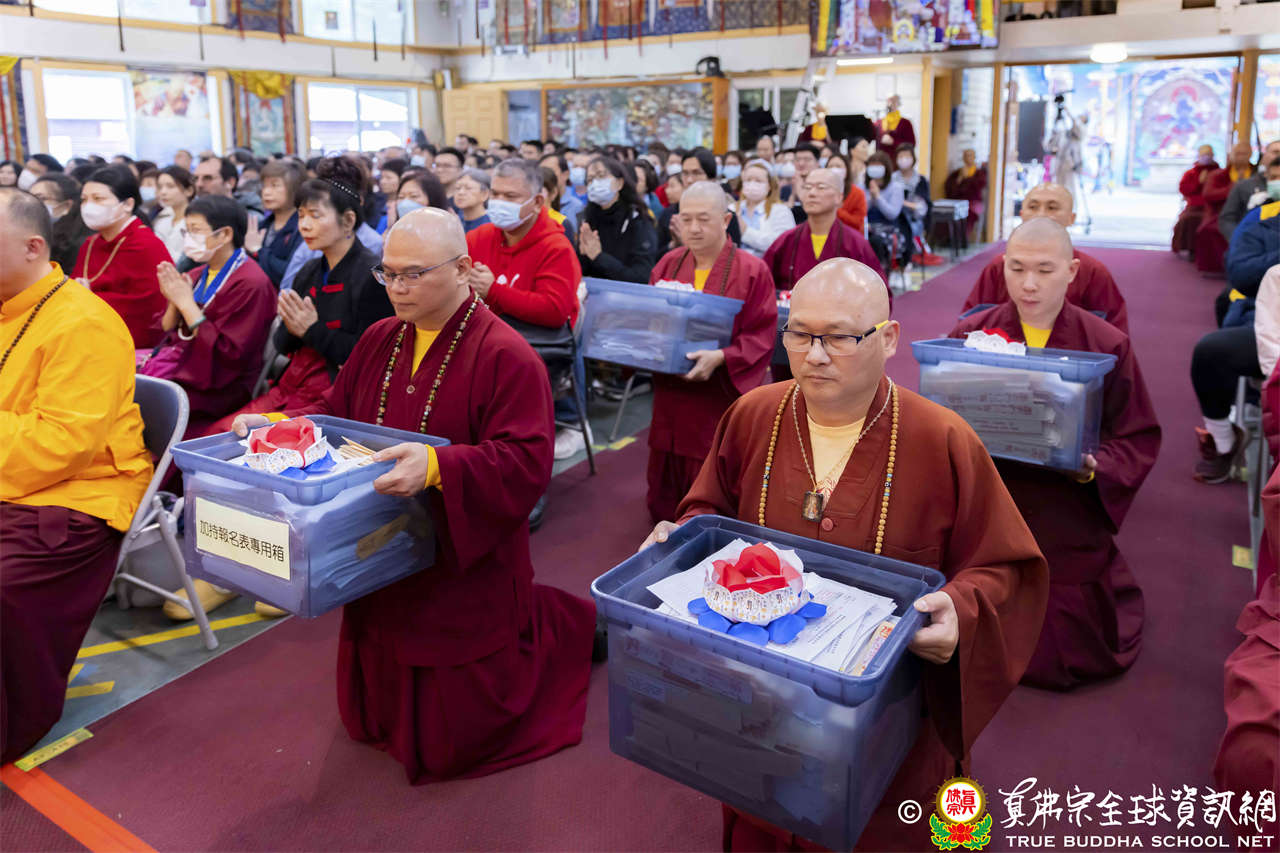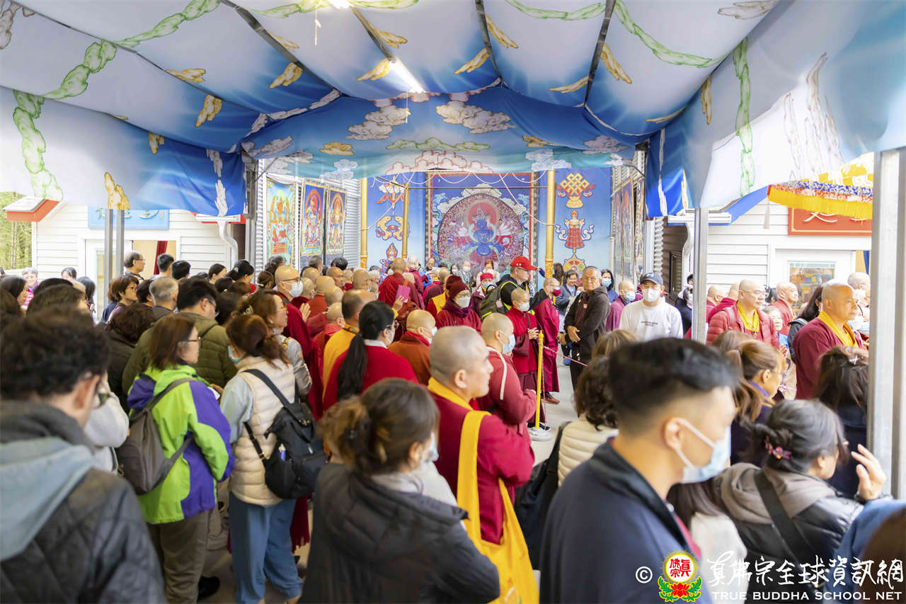 接著法王介紹法會主尊時輪金剛說道,「這是密教難得殊勝的大法,祖師也囑咐要將之廣傳世界五大洲。按照祖師所傳,主持時輪金剛法,必須十個指頭都必須帶上戒指。」