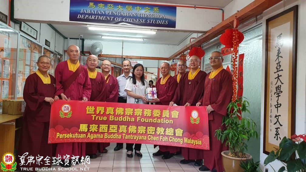 馬來亞大學(University of Malaya)乃馬來西亞歷史最悠久的國立大學,而隸屬馬來亞大學文學暨社會科學院的中文系(Department of Chinese Studies),自1965年成立至今,已培養了3900多位主修中文的畢業生、130多位碩士和20多位博士。此次參訪的目的,為向馬來亞大學中文系主任潘碧華博士請益辦學經驗,作爲宗派開辦真佛網絡學院的前置作業,及捐贈系列“蓮生活佛文集”,供該高等學府的學生借閲。