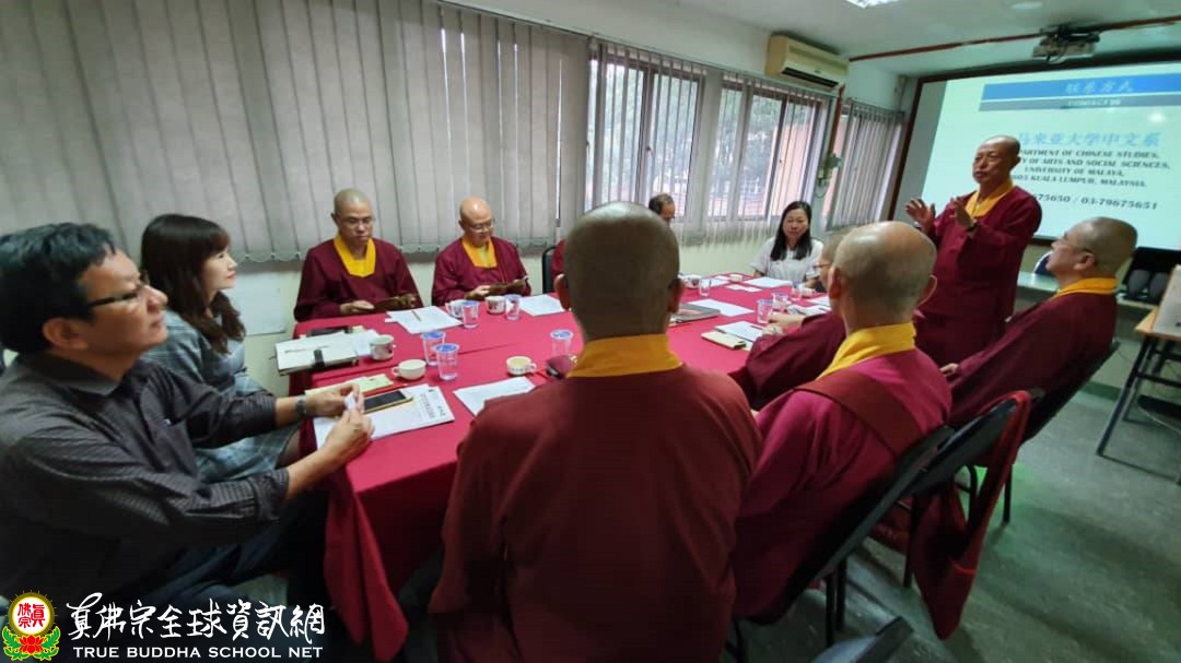 世界真佛宗宗務委員會核心小組全體成員與馬來西亞真佛宗密教總會的代表,於2019年7月4日下午參訪位于馬來西亞首都吉隆坡的馬來亞大學中文系。