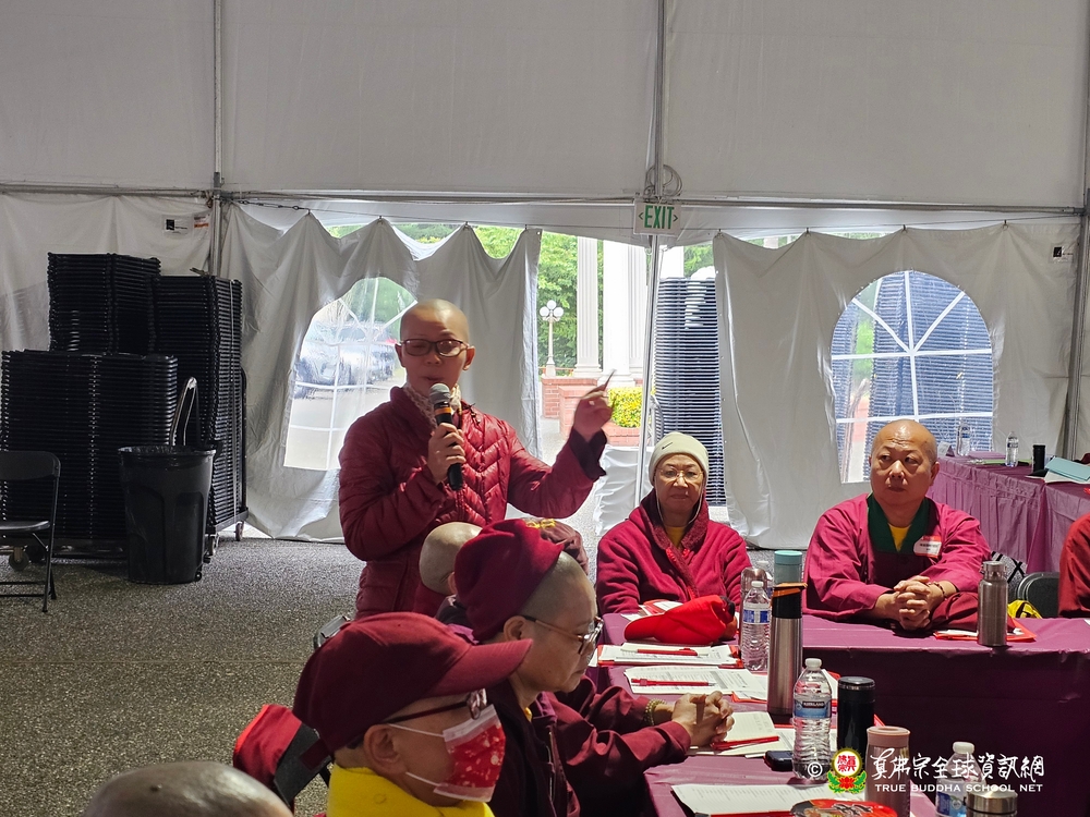 其中第二組蓮媖、蓮櫻教授師帶領的菩提行願組,蓮闐法師代表發言,提出了很實際的一個進行方法:「該組一致認為真佛互助祈禱會應該要先做年齡層區別,因為不同年齡層,有不同的煩惱,這樣在相同的情境下,聆聽別人的故事,或許可以反觀自己,還不至於太糟,由此得到激勵。」