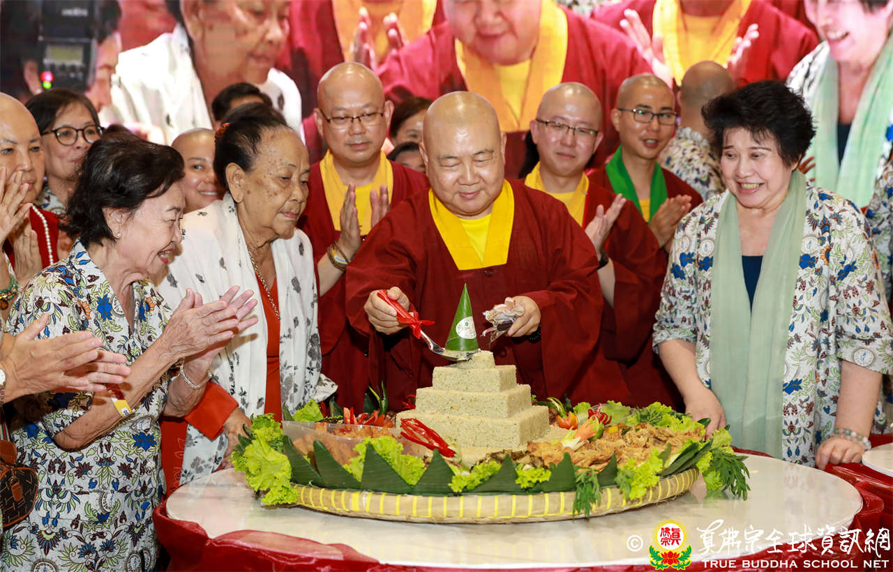 印尼雷藏寺的理事們都穿著統一的峇澤上衣,許多上了年紀的老菩薩今日都特別出席了印尼雷藏寺三十週年慶,有些還是坐著輪椅,或拄著拐杖來的,多年不見的老友在此重見,令人分外感動。