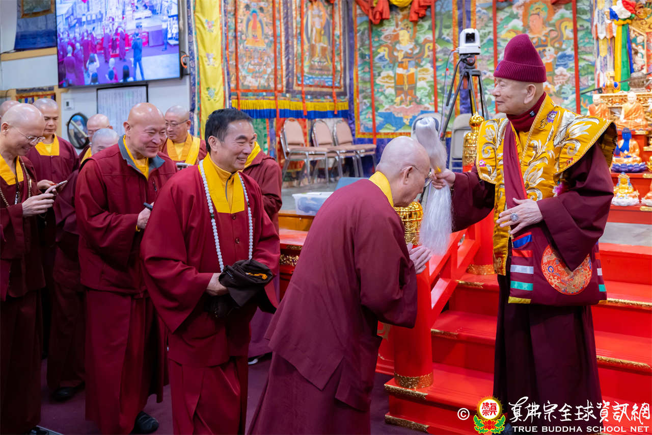 開示結束後,法王為與會大衆賜授除蓋障菩薩法灌頂。至此,法會圓滿結束。