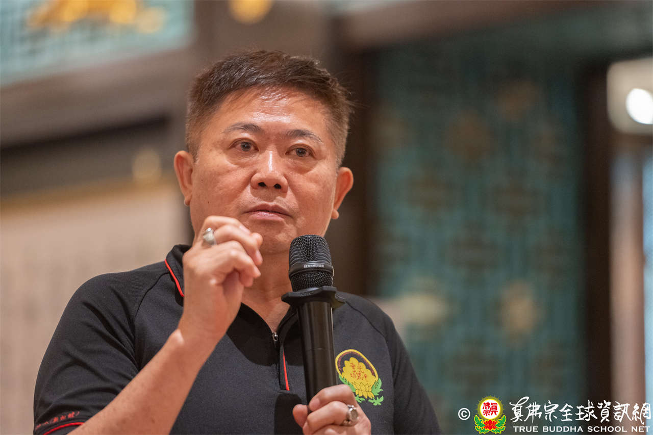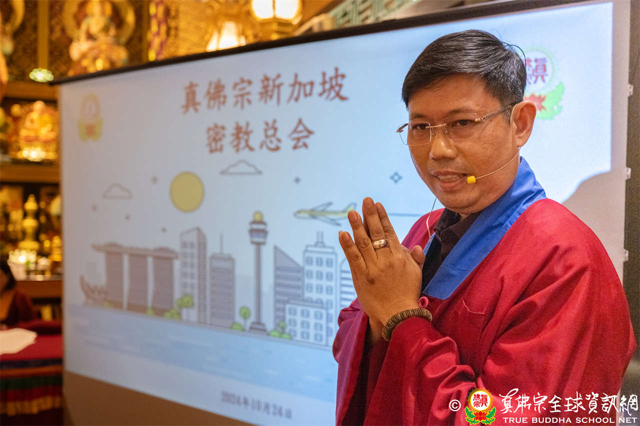 新密總的成立,如何使新加坡五個單位凝聚力量?會長告訴諸位理事,我們都是一家人,你的擔心就是我的擔心,然而這是一個好的開始,是新加坡的一個創舉,成立密總,宗派能更快速發展,配合國家的建設、社會的建設,將真佛密法走入民間。