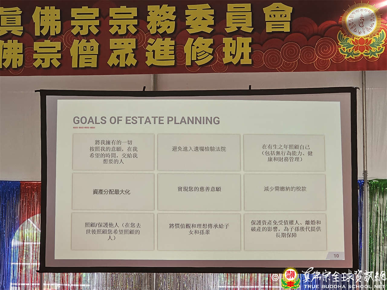 行者應當做到盡量不麻煩別人,特別是有很多僧眾出家後便於道場服務,若往生後,親人也不知道該如何處理僧眾的物品,所以若能事先做好規劃,交代清楚身後事以及如何分配留下之物,相信旁人在協助處理時,定能很快完成,因為只要遵照往生者的遺願即可,不會產生是否會對於亡者不敬的疑慮。賴律師講解後,特地開放問答環節,多位法師提出的疑慮,賴律師皆詳細的解答,更是佛心的應允可以為宗派的僧眾提供免費諮詢服務,非常感謝賴律師無私的愛。