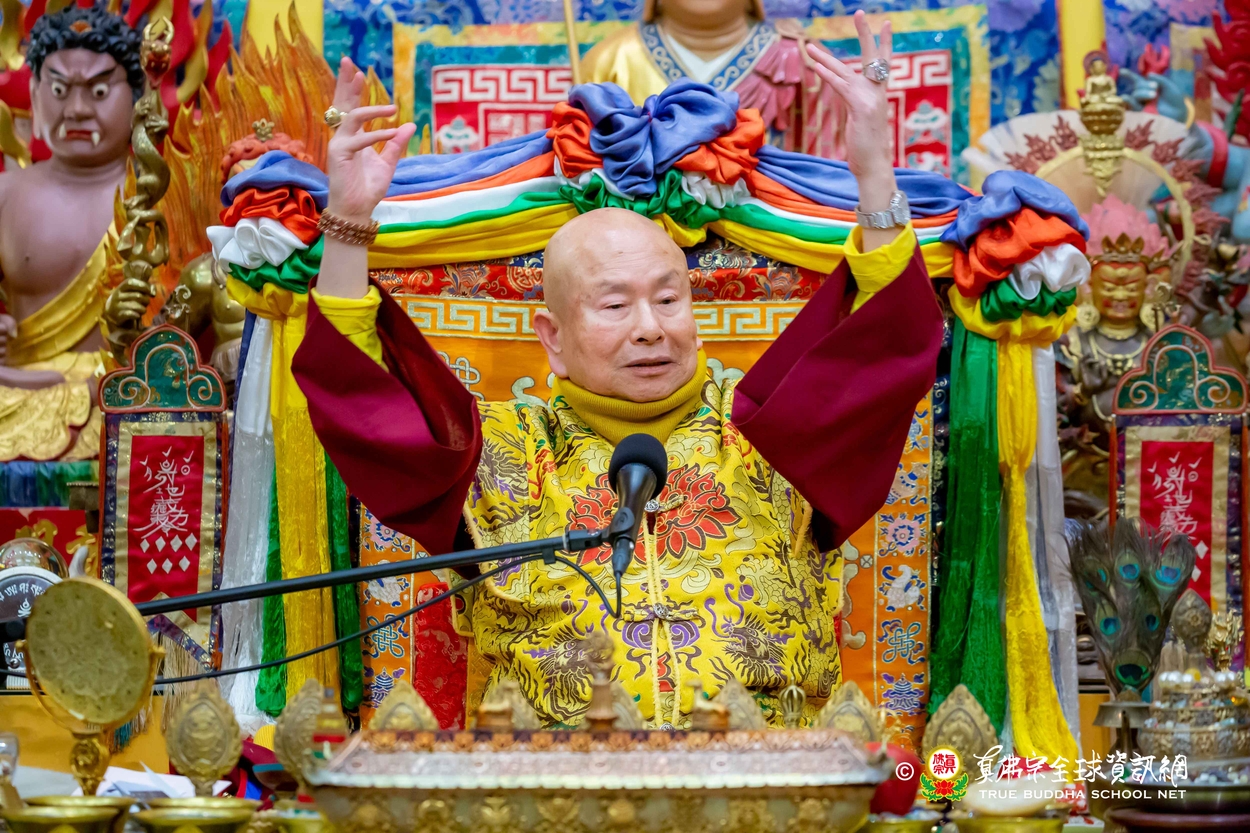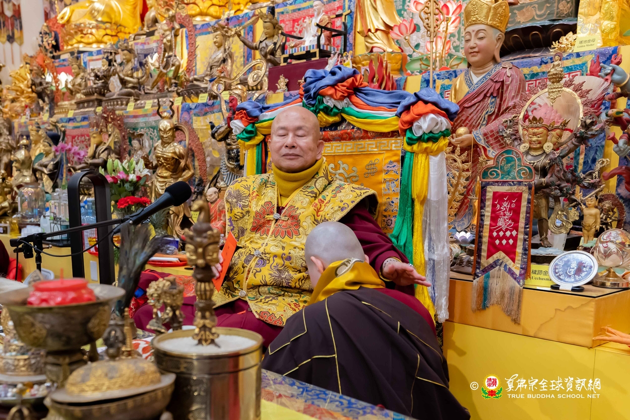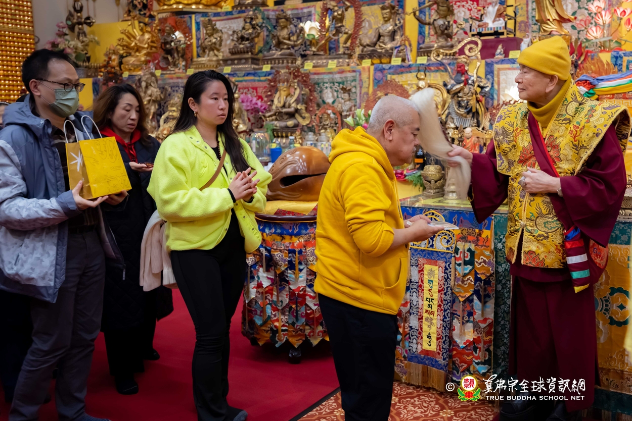 最後,聖尊慈悲的為新皈依的弟子們進行皈依灌頂,並加持大悲咒水,開光佛像,持拂塵加持與會大眾。