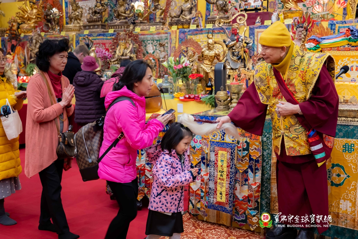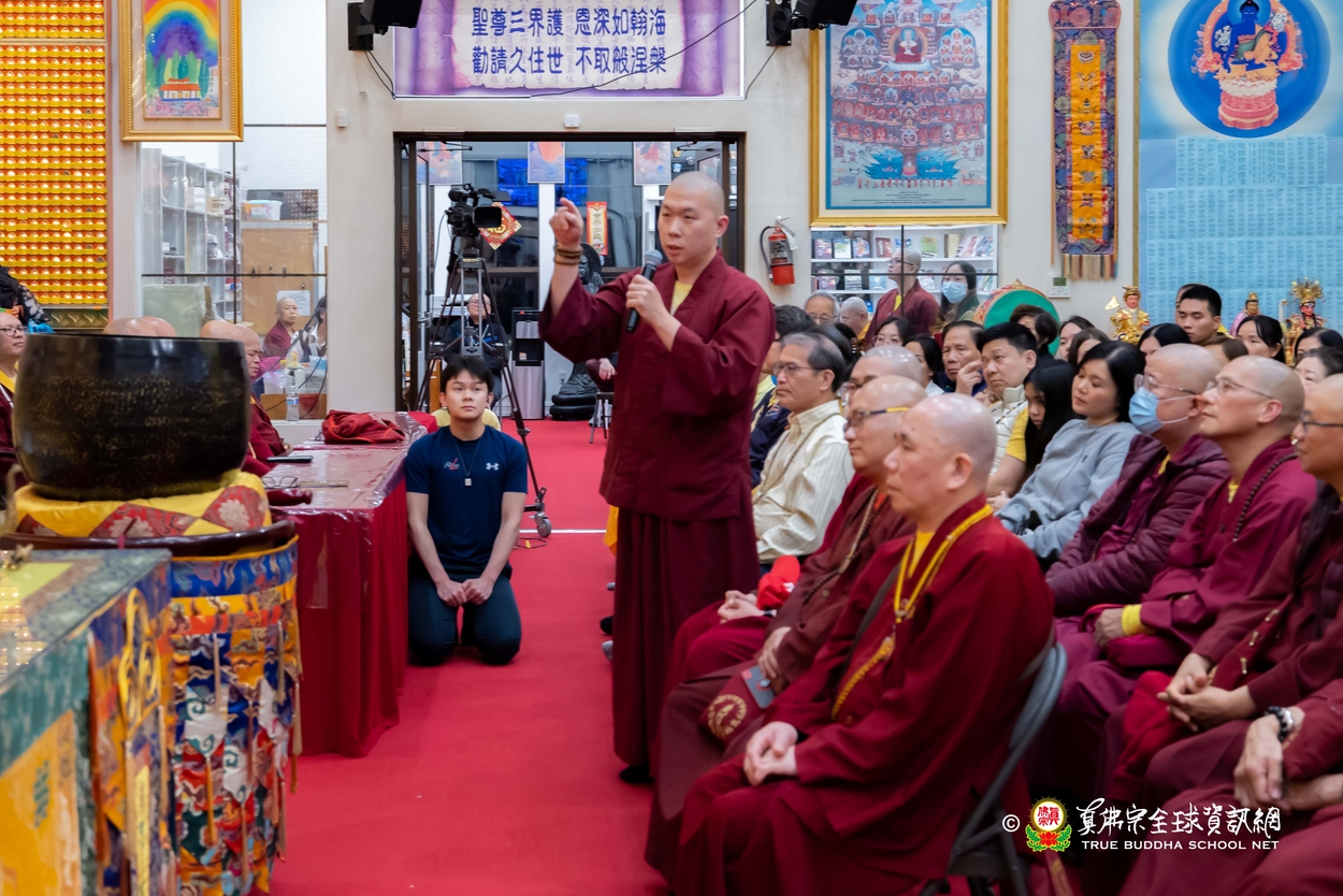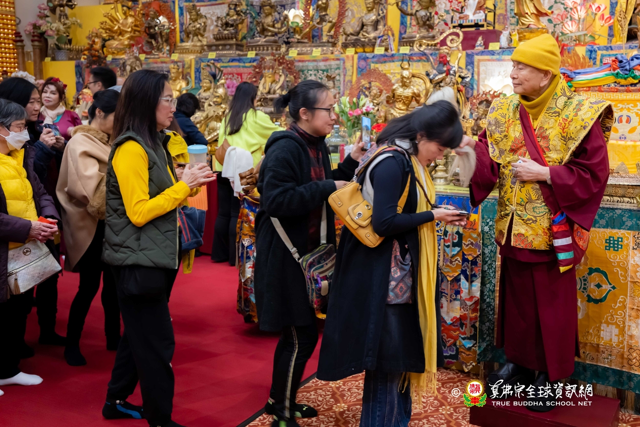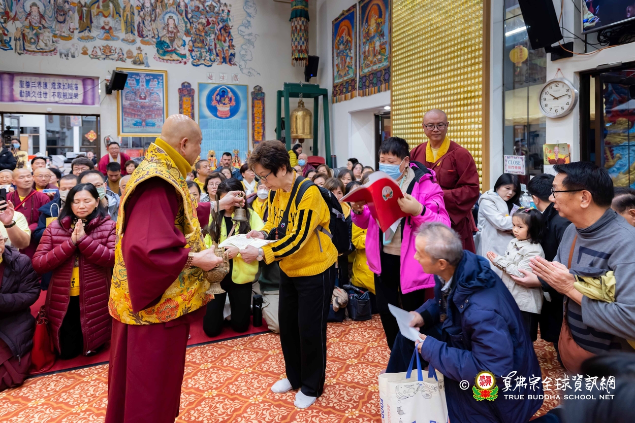 最後,聖尊慈悲的為新皈依的弟子們進行皈依灌頂,並加持大悲咒水,開光佛像,持拂塵加持與會大眾。
